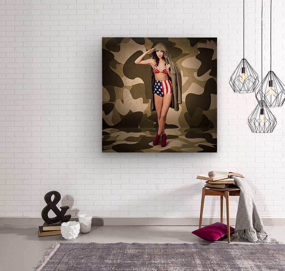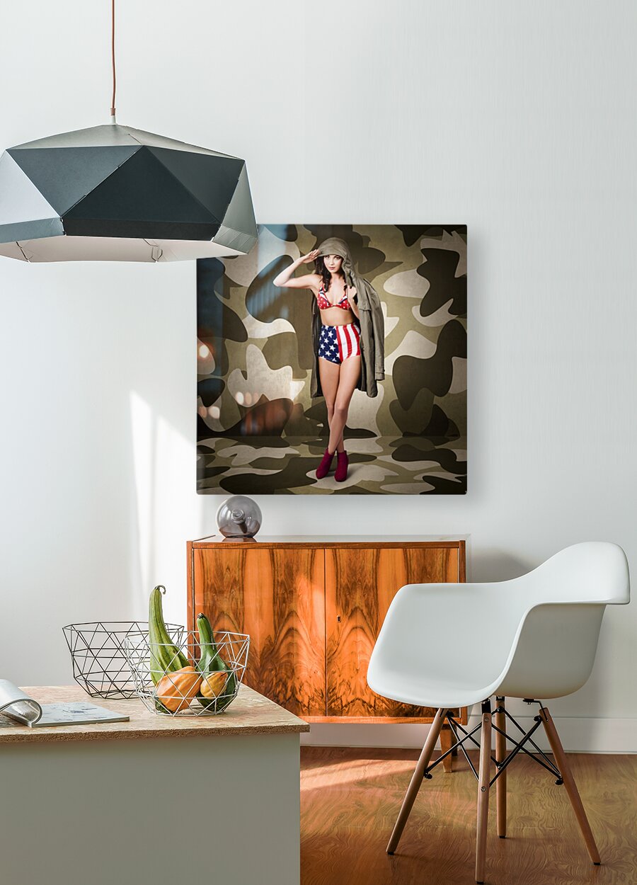 ABOUT THIS ARTWORK: RETRO PINUP GIRL IN AMERICAN ARMY LINGERIE
