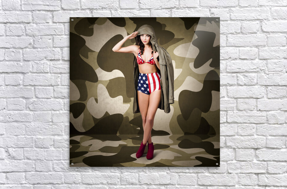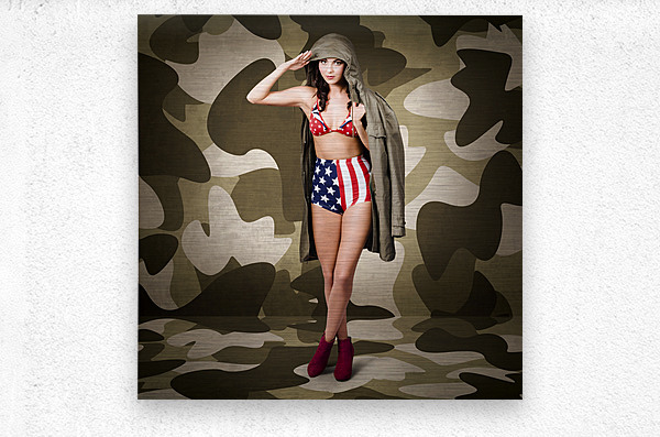 RETRO PINUP GIRL IN AMERICAN ARMY LINGERIE