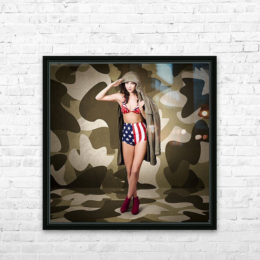 Retro pinup girl in American army lingerie Picture Frame Printing