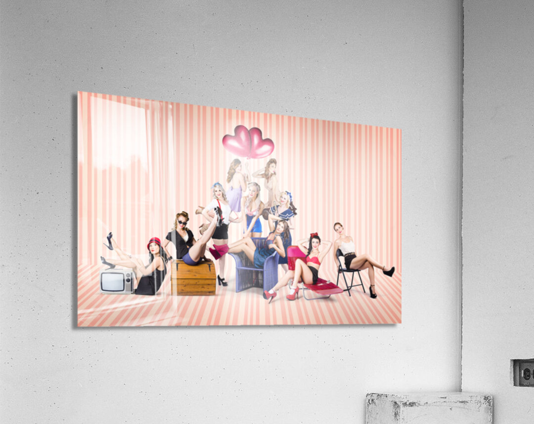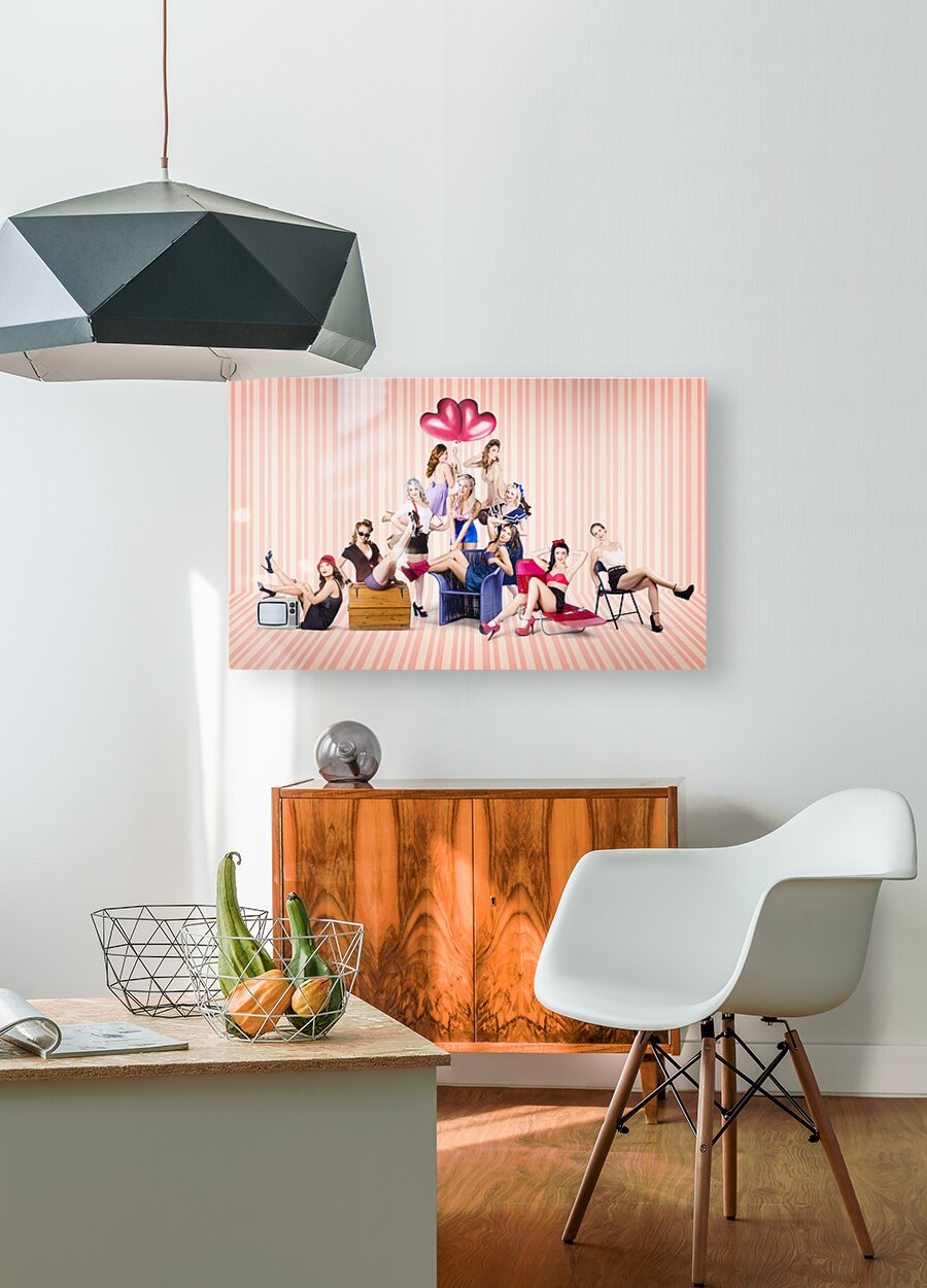 Get this artwork "Group of 10 beautiful pinup girls in retro fashion" in a framed print.