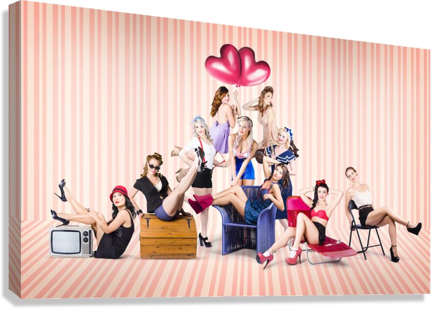 Group of 10 beautiful pinup girls in retro fashion Picture Frame Printing