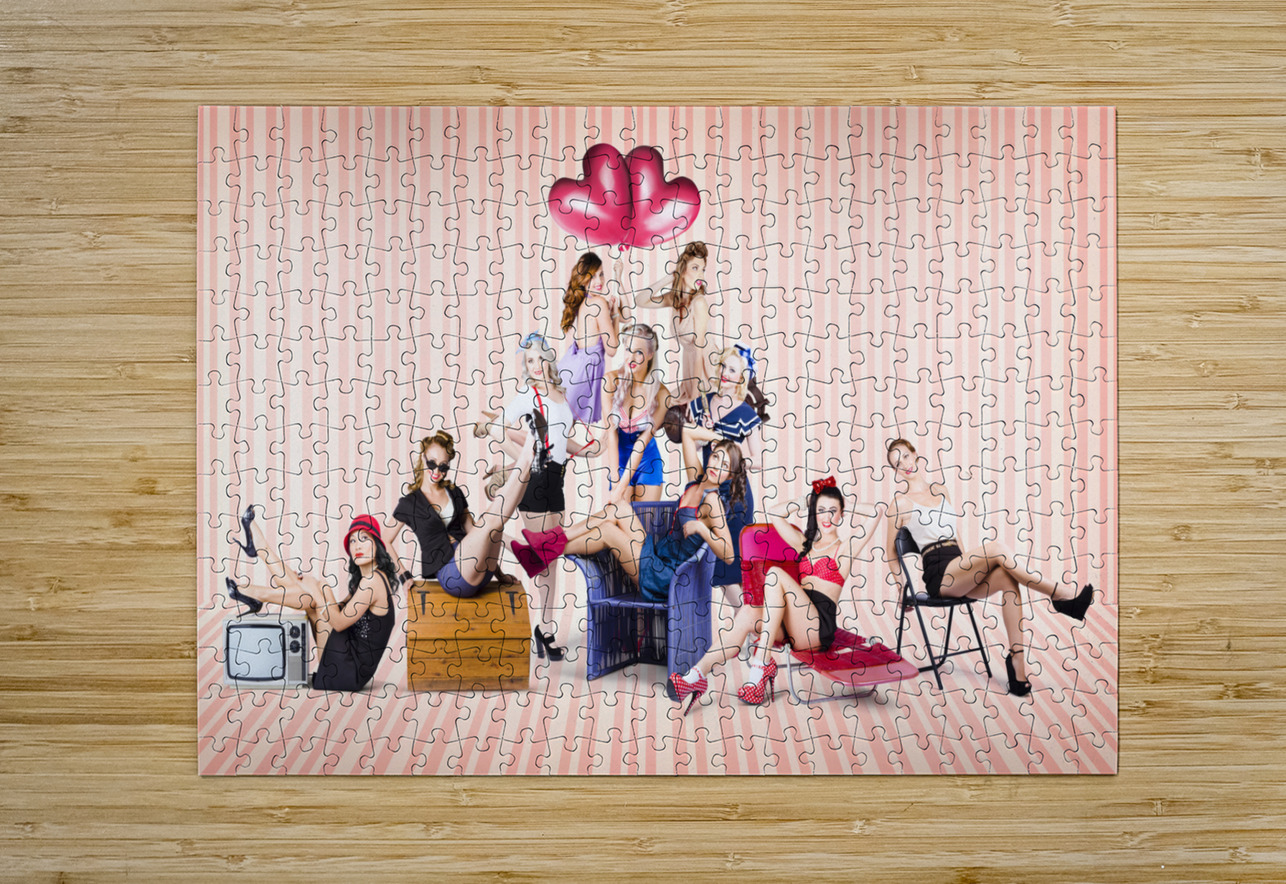 Group of 10 beautiful pinup girls in retro fashion Jorgo Puzzle printing