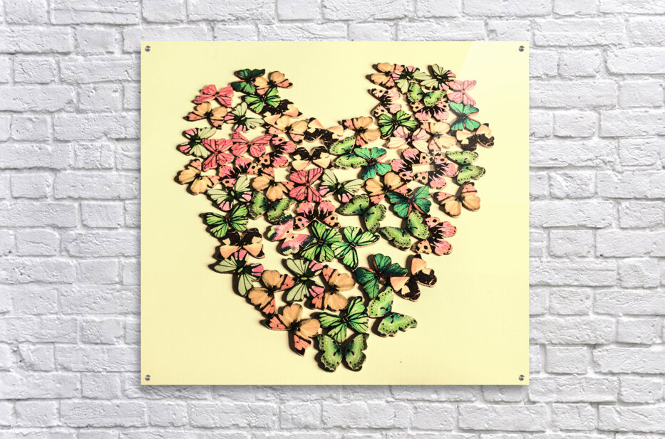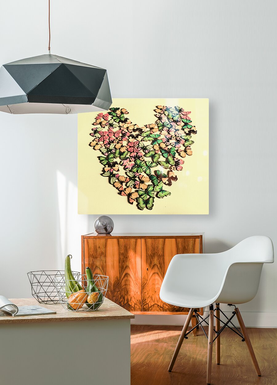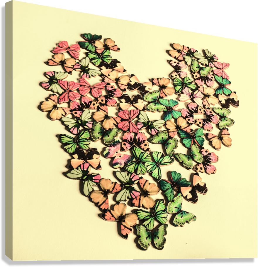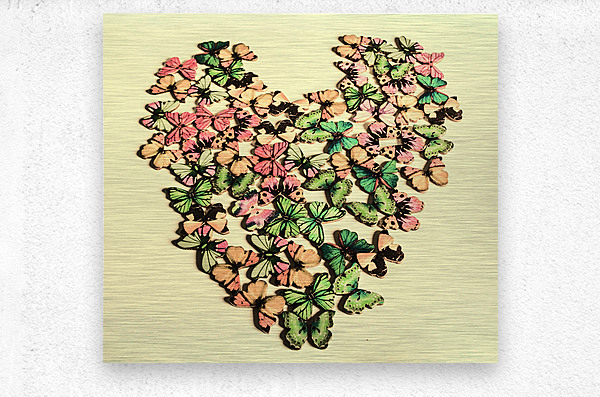 Retro toned still-life design on a celebration of butterflies in the shape of whole hearted togetherness. Nesting heart