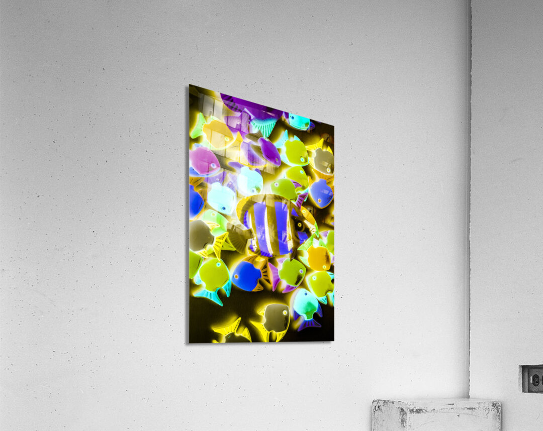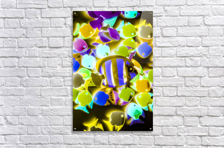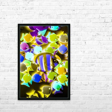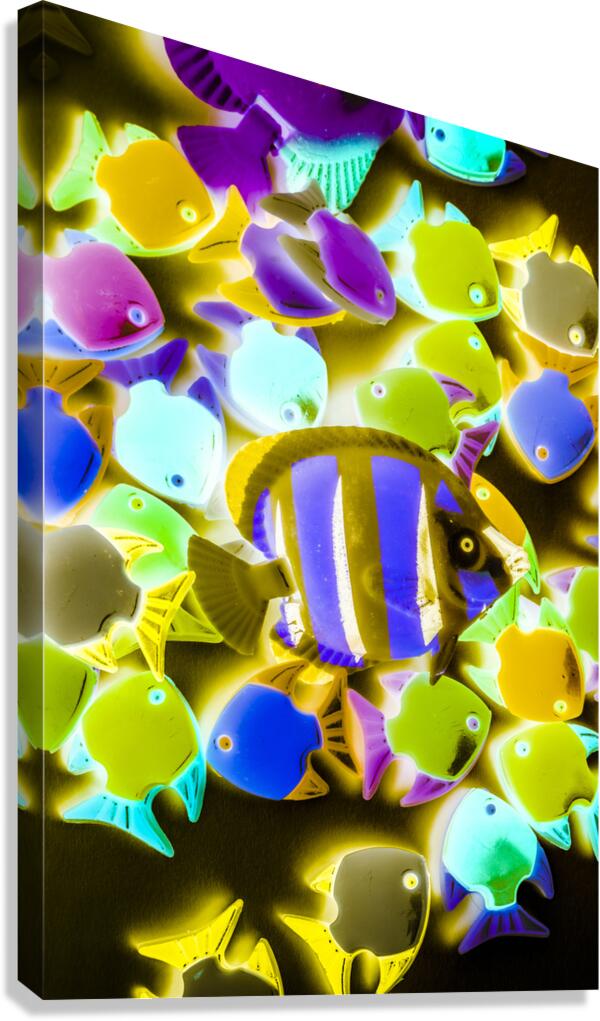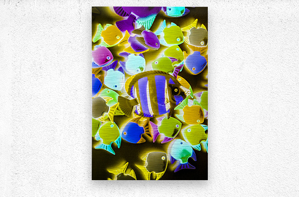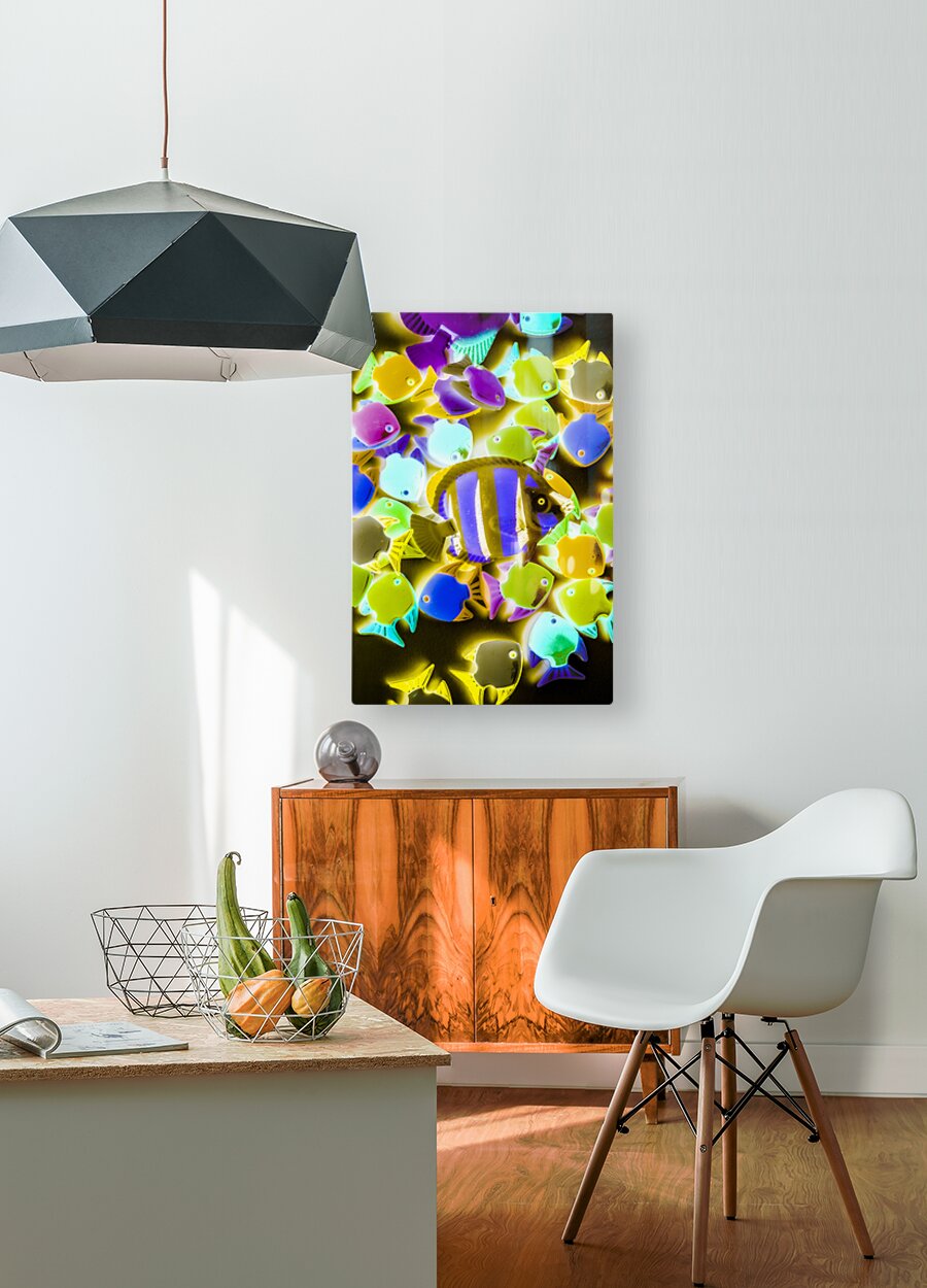 Under water art on toy fish in retro decorative abstract. Wild waters