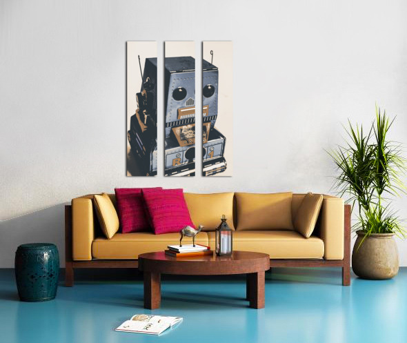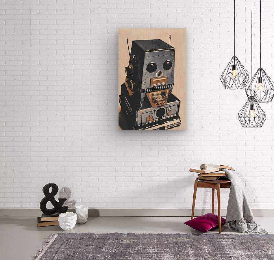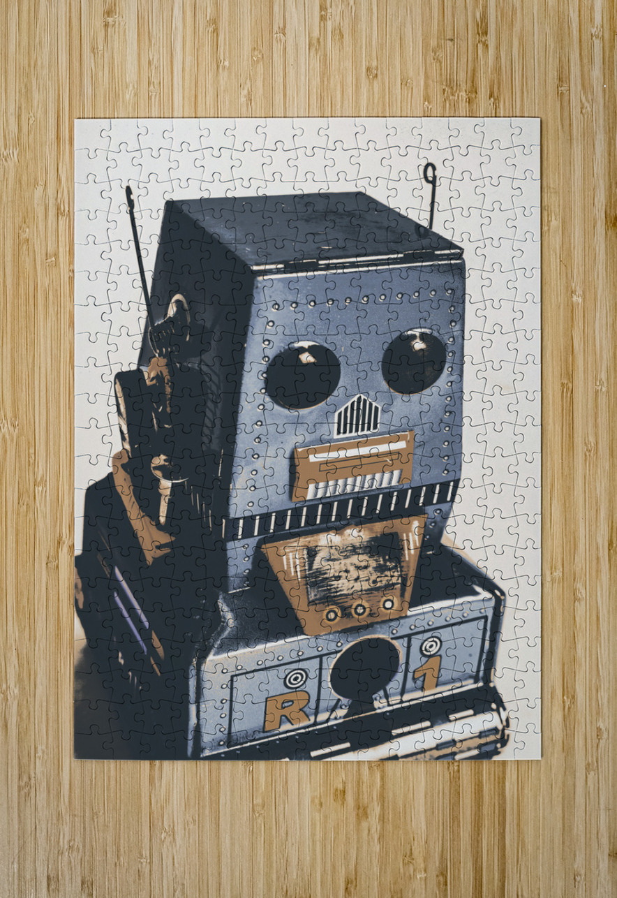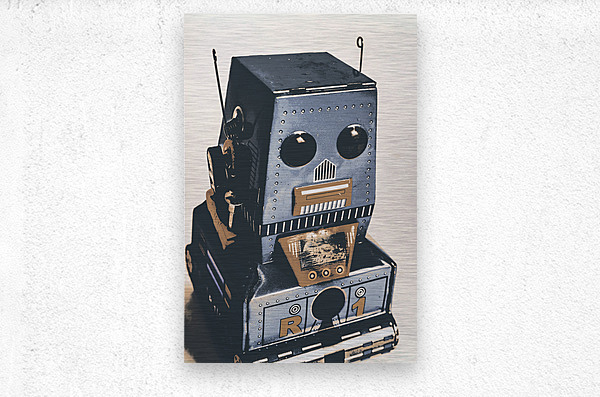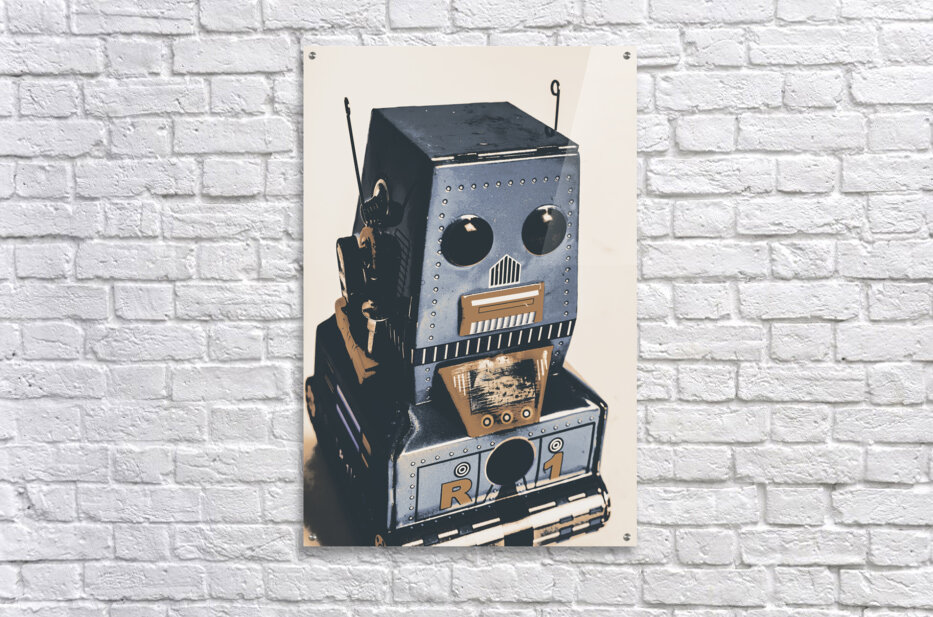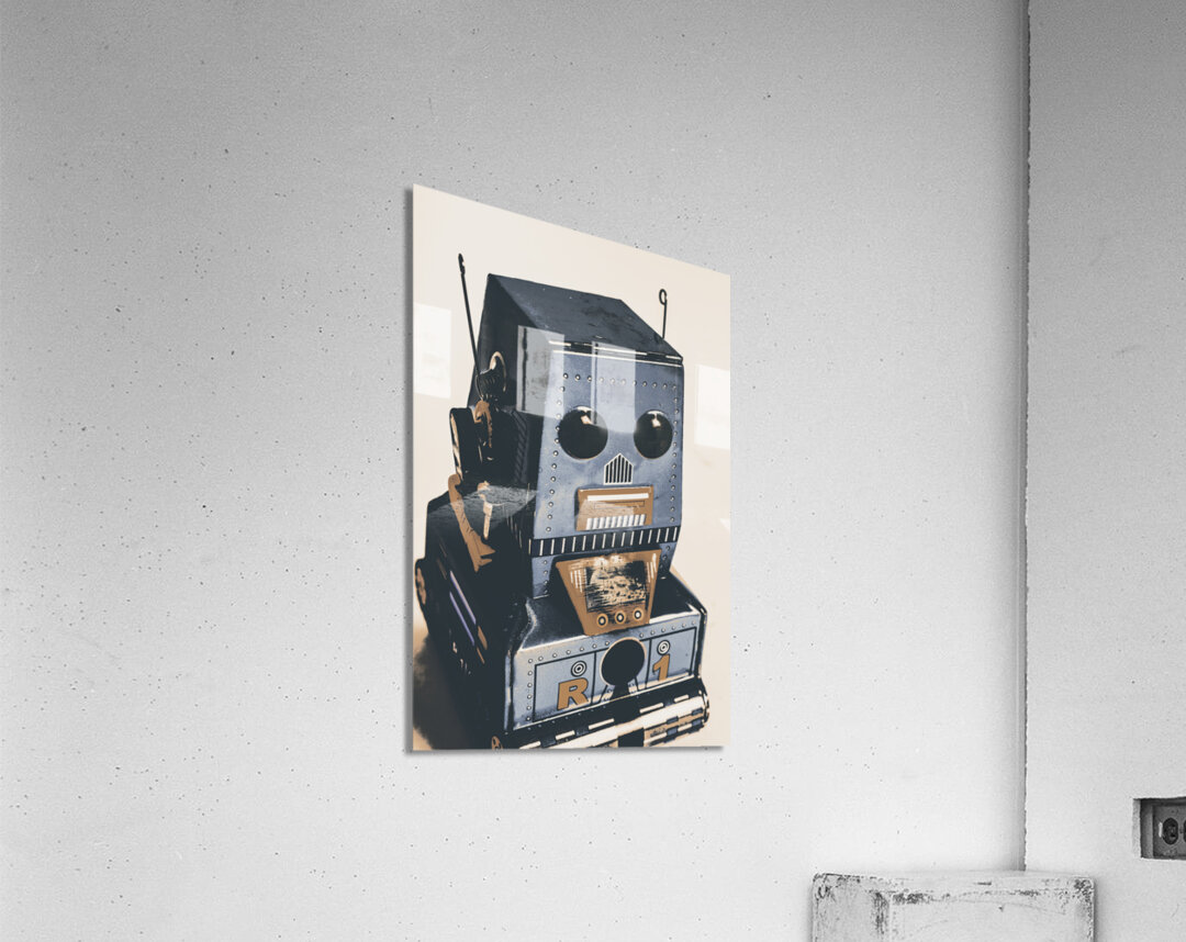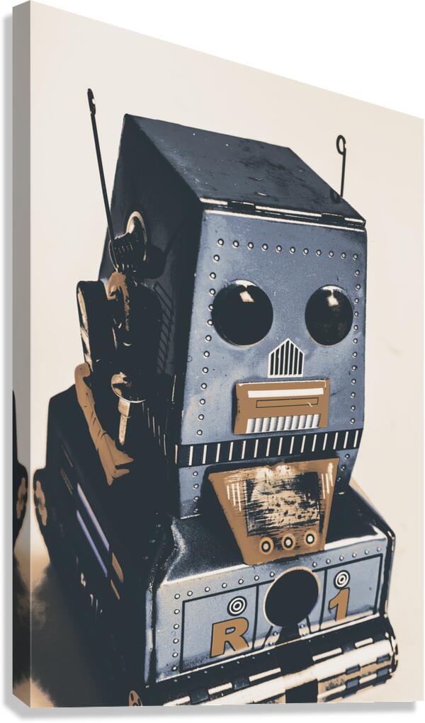 Technological antiquities in a still life scene of blue bots in vintage toy nostalgia. R1 robotics