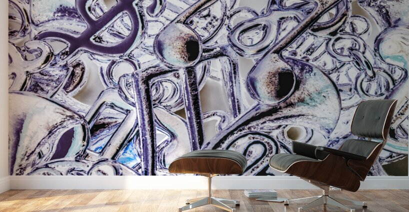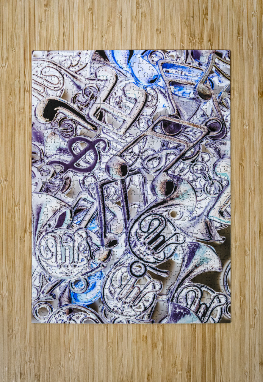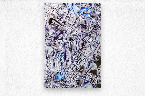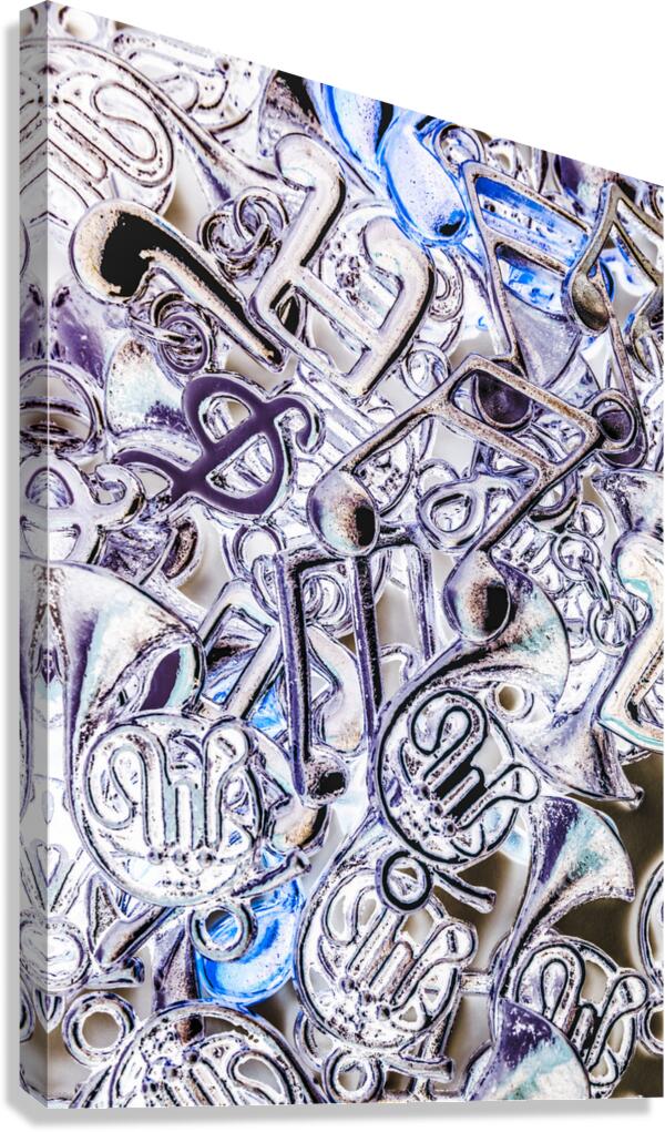 Blues funk and jazz captured in a still-life scene of abstracted musical notation abstracted. Silver dance
