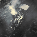 Heavy iron industry in a scene of romantic railways from 20th century nostalgia. The Steam Age