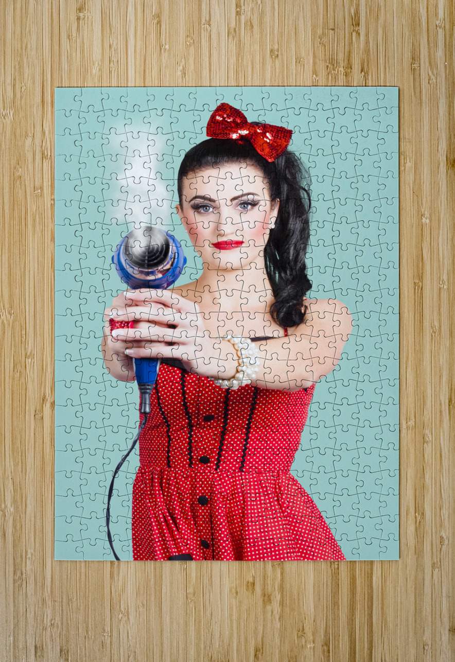 Hairdresser woman shooting a cool haircut in style Jorgo Puzzle printing