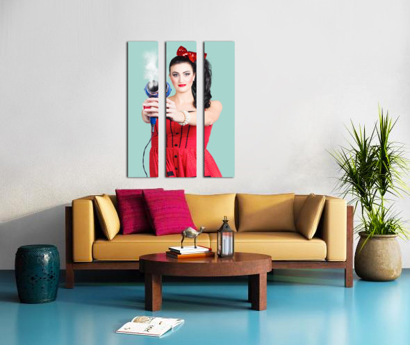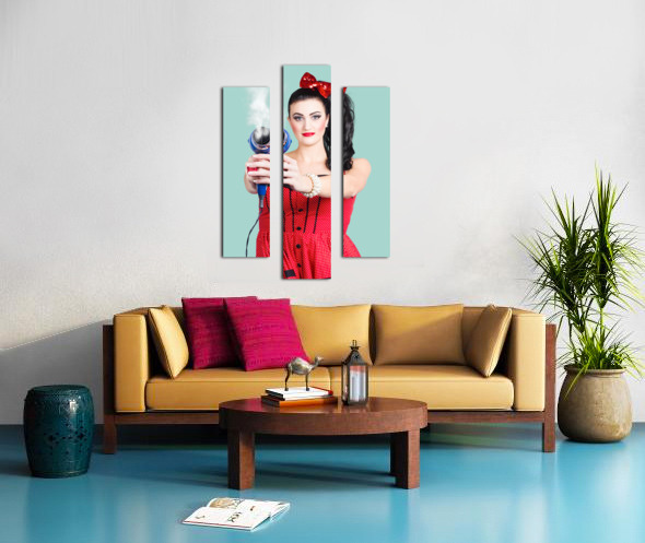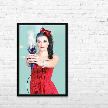 Get this artwork "Hairdresser woman shooting a cool haircut in style" in a framed print.