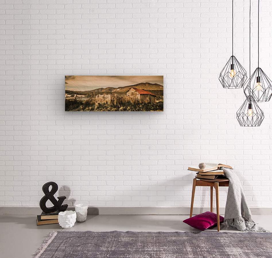 Parnoramic country landscape on a beautiful old-fashioned shack in remote rundown pastures. Liffey Tasmania Australia