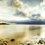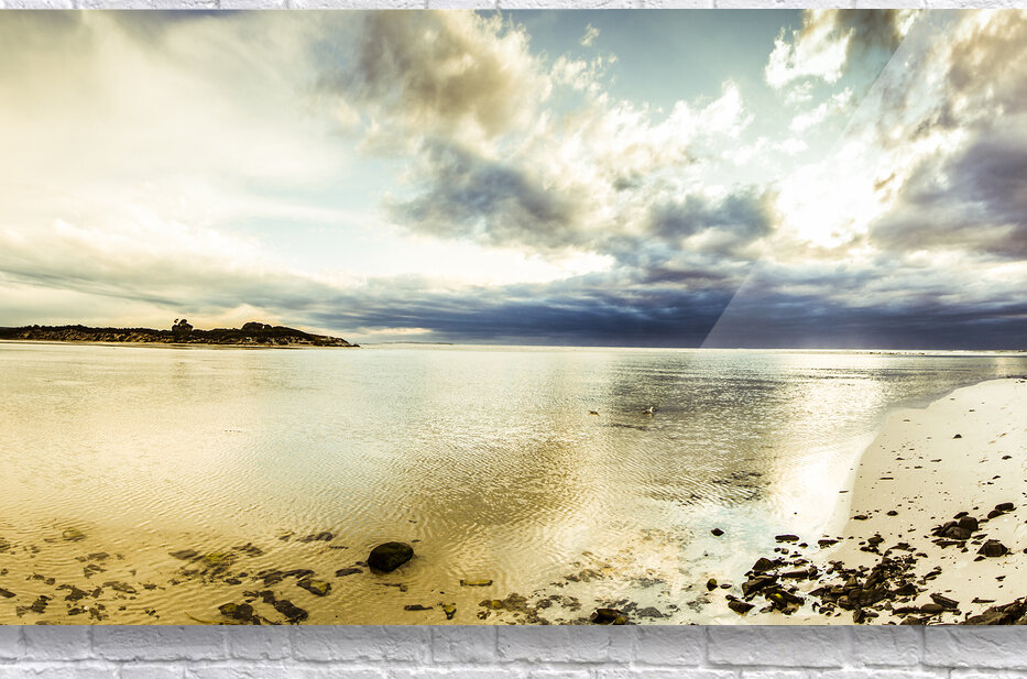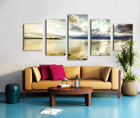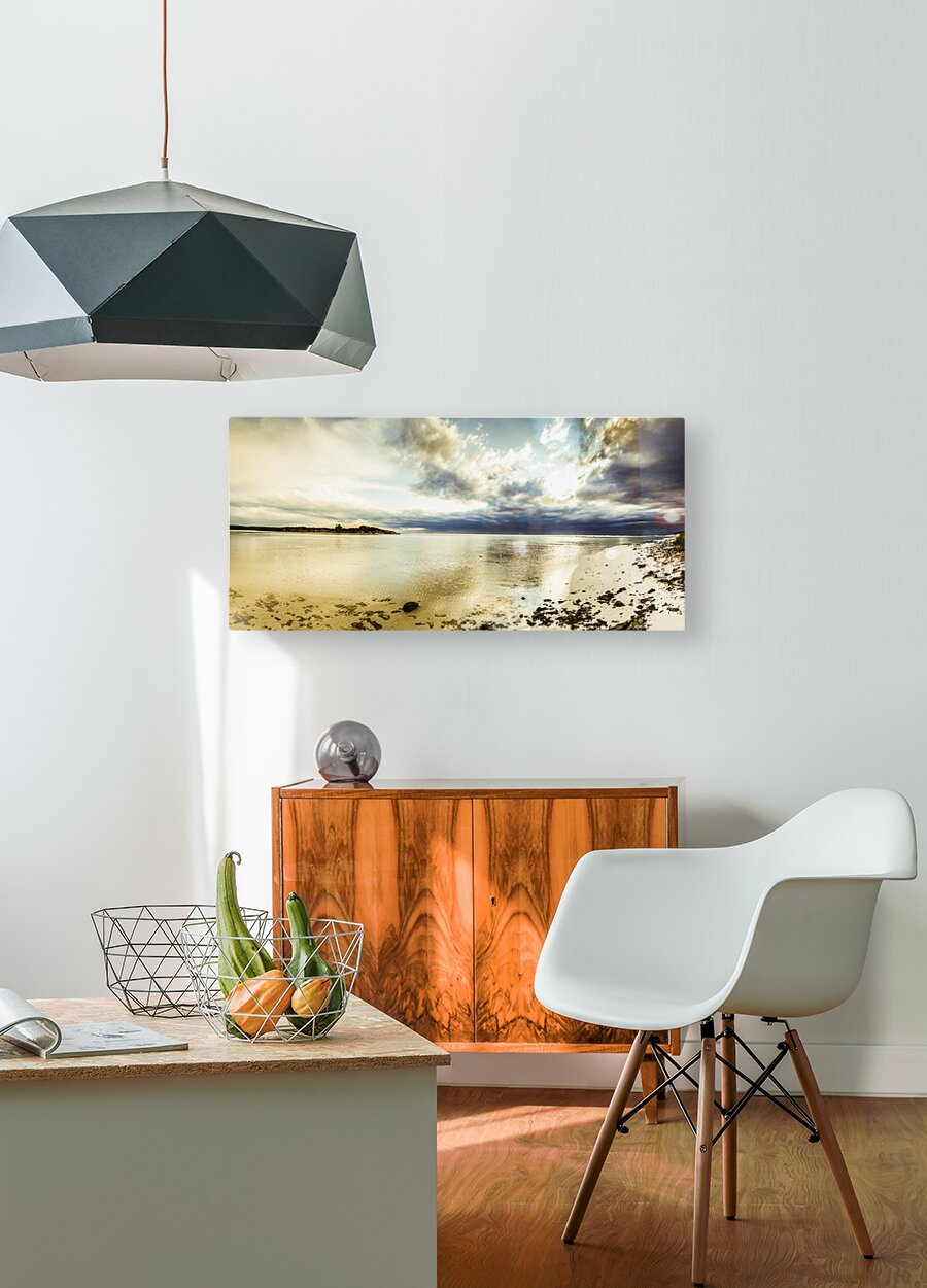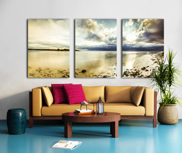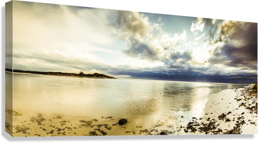 ABOUT THIS ARTWORK: BEACH PANORAMA OF A SUNRISE OVER THE SEA