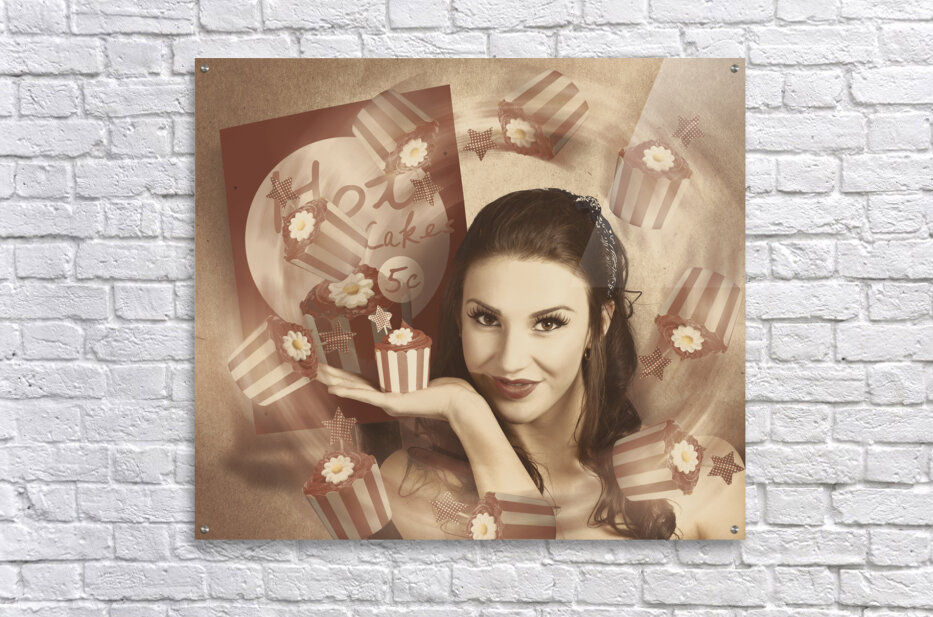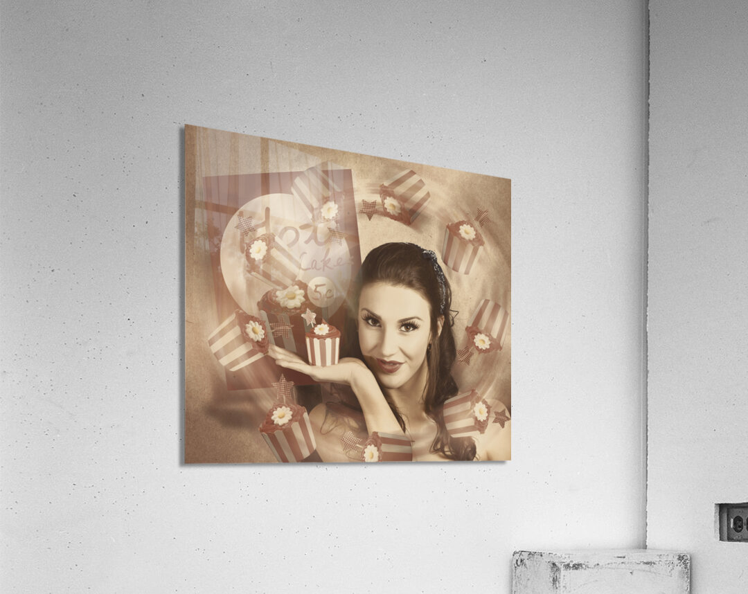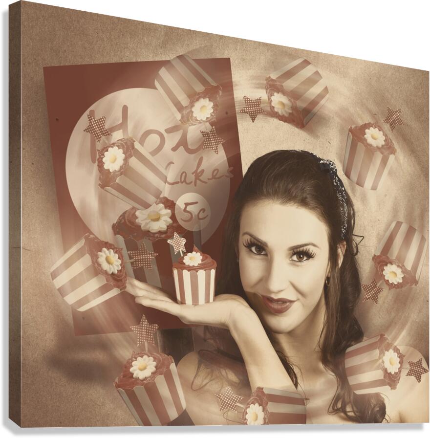ABOUT THIS ARTWORK: RETRO CUPCAKE POSTER GIRL ADVERTING BAKED CAKE