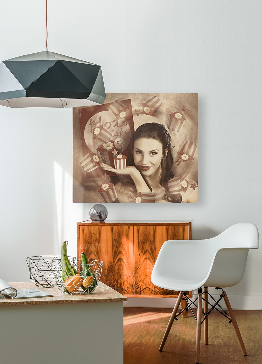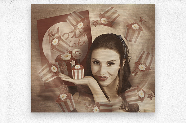 Retro cupcake poster girl adverting baked cake  Wood print