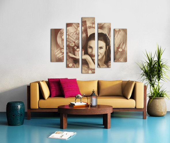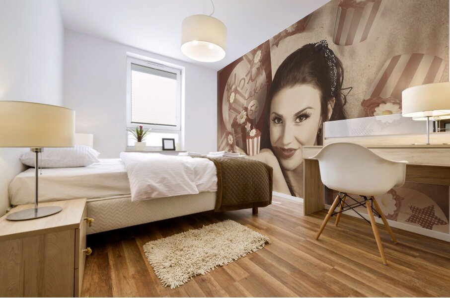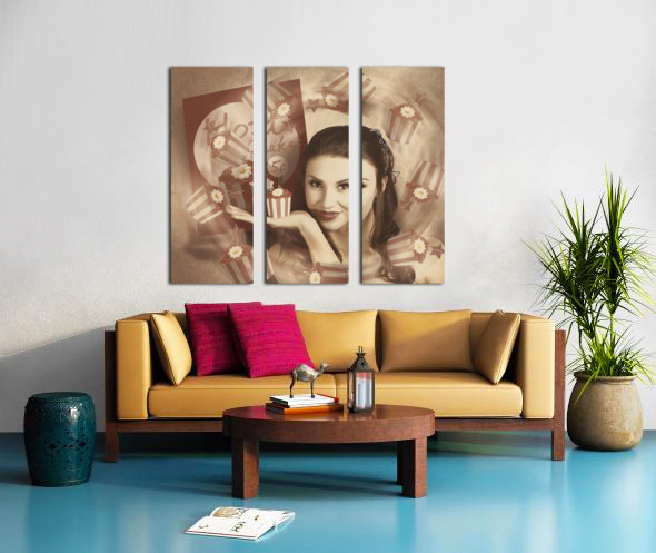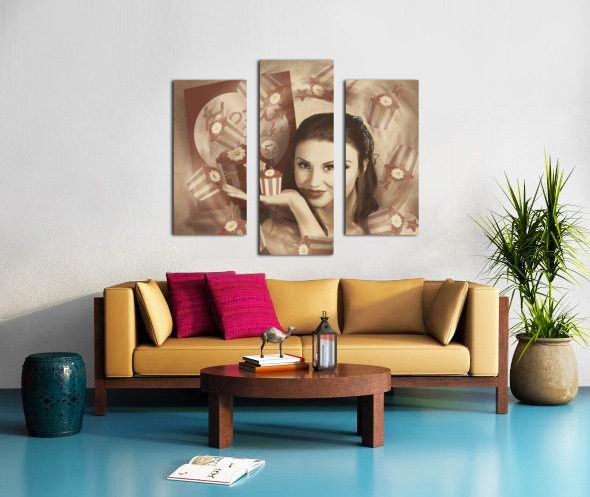 Retro cupcake poster girl adverting baked cake Wood print