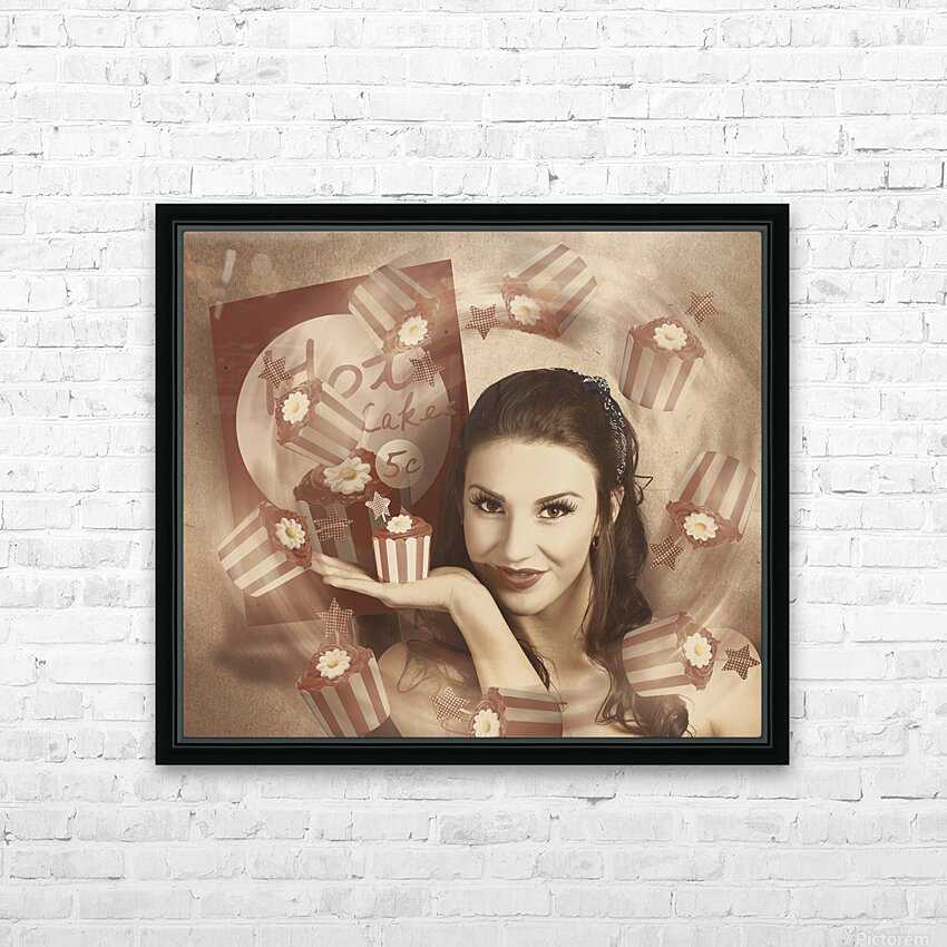 Retro cupcake poster girl adverting baked cake Picture Frame Printing