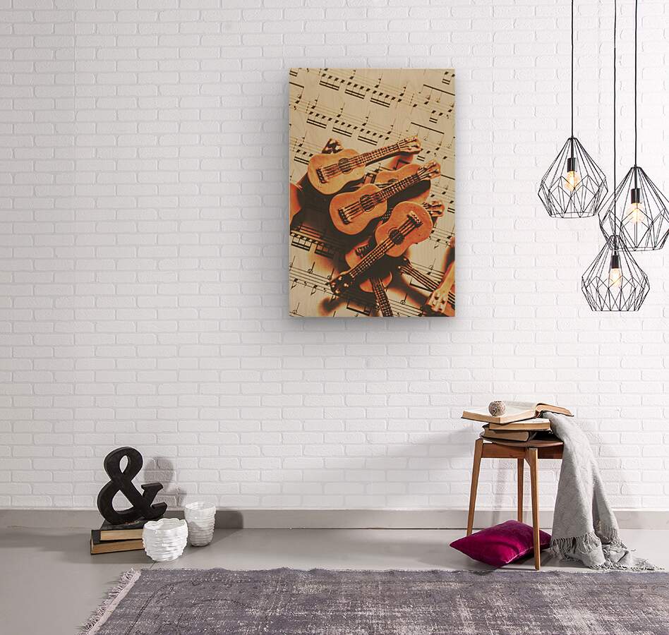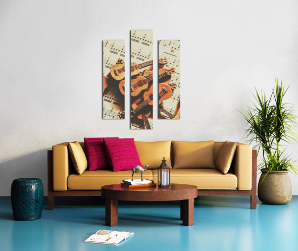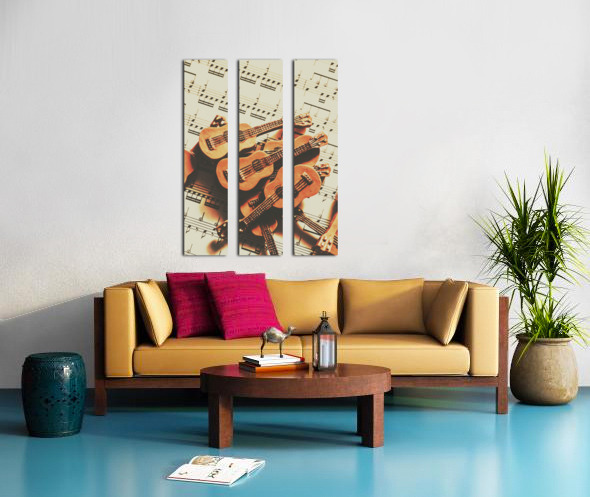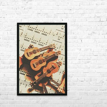 Get this artwork "Vintage guitars on music sheet" in a framed print.