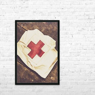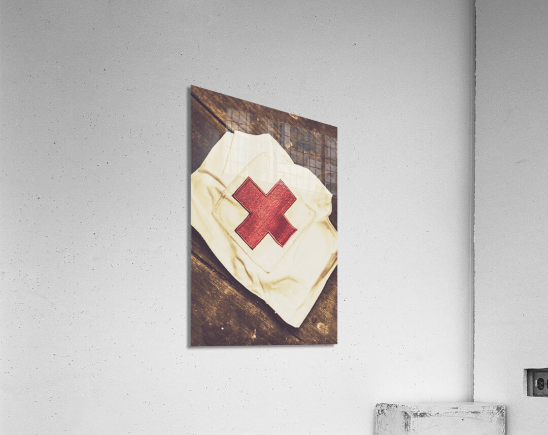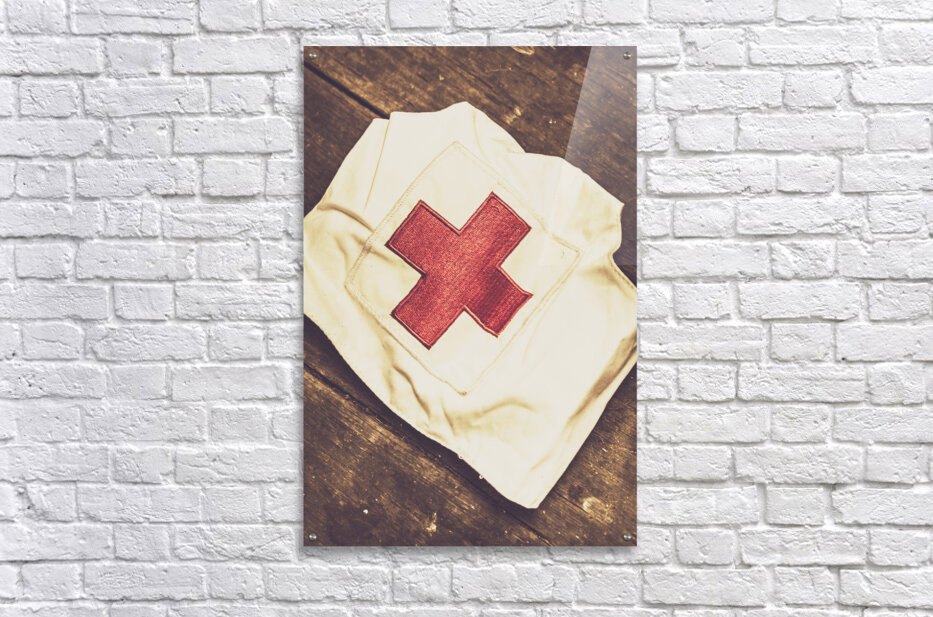 Get this artwork "Antique nurses hat with red cross emblem" in a framed print.