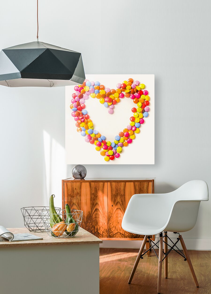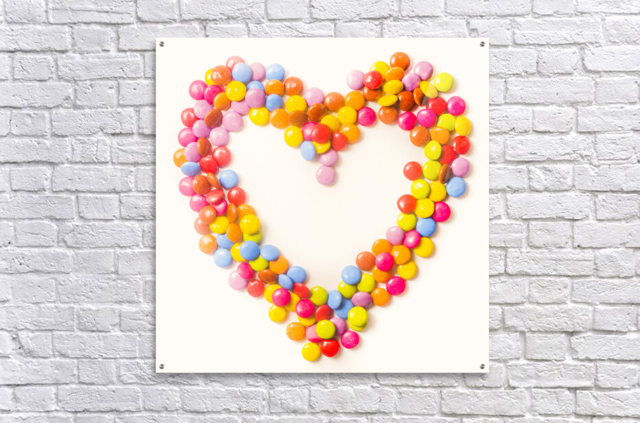 A round romance in sugary confections with still life candy heart celebration on white. Sweetest thing