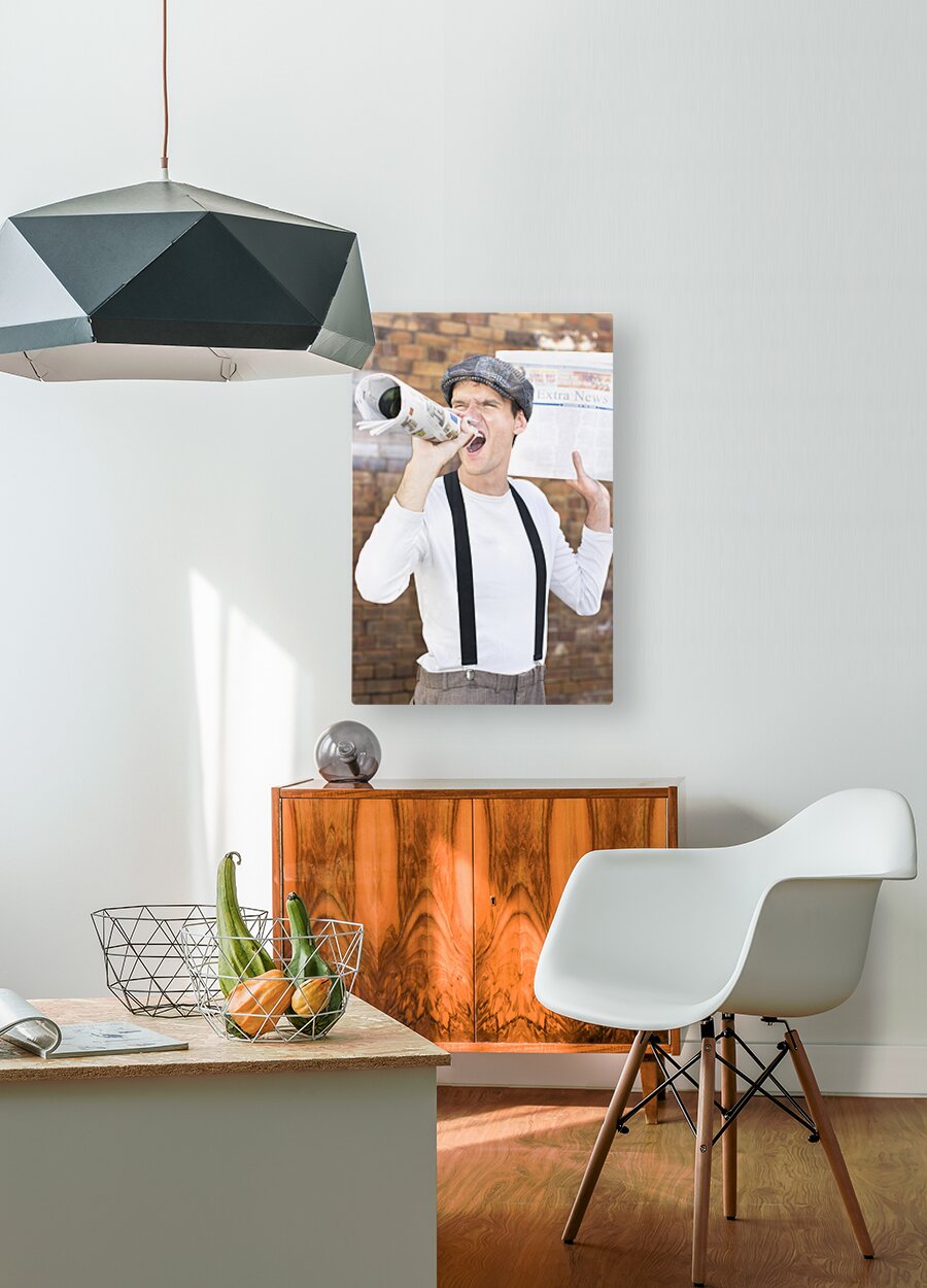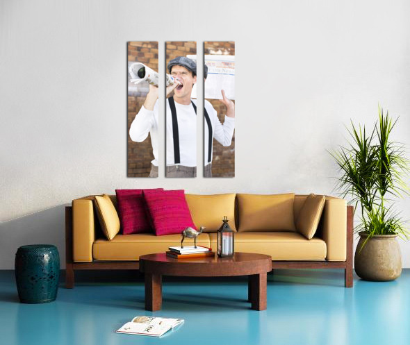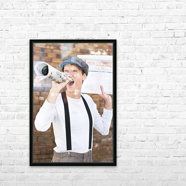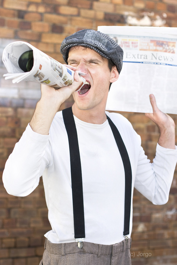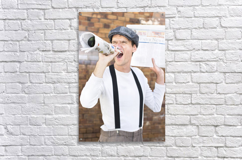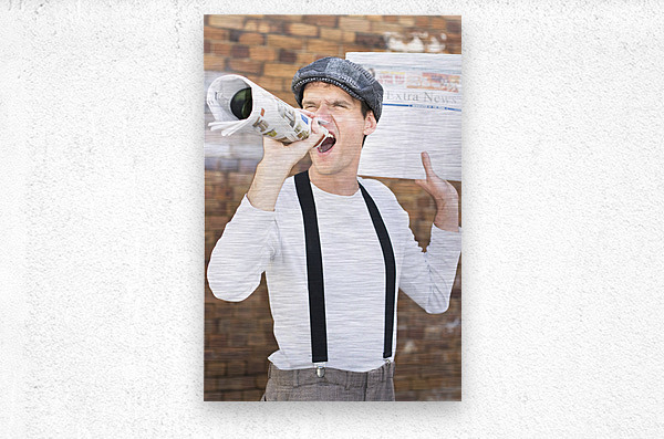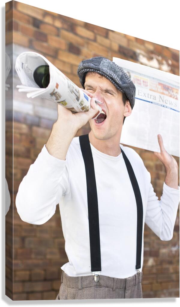 Paperboy Shouts Out The Latest Through His Rolled Up Newspaper In An Act Of Selling News