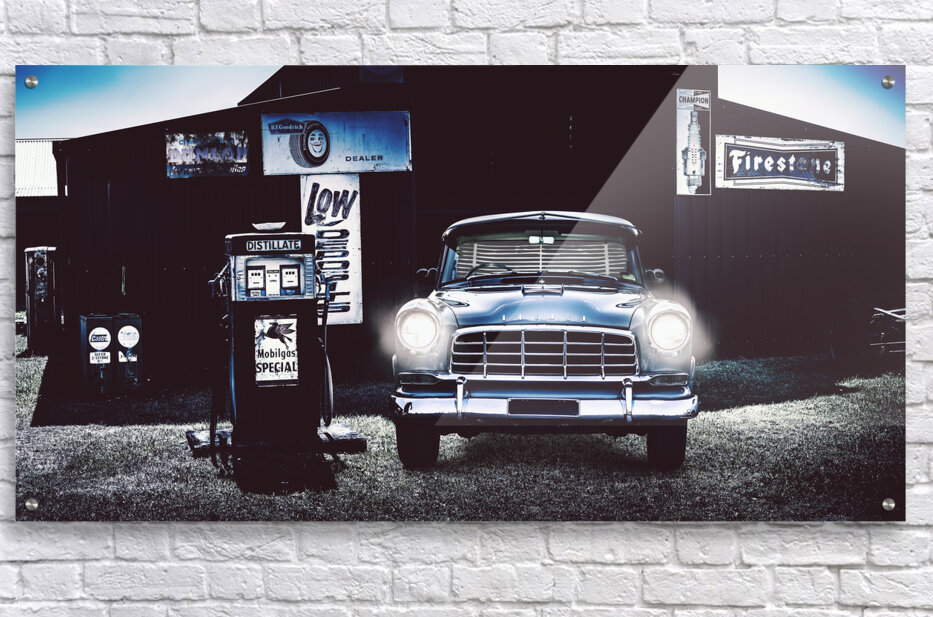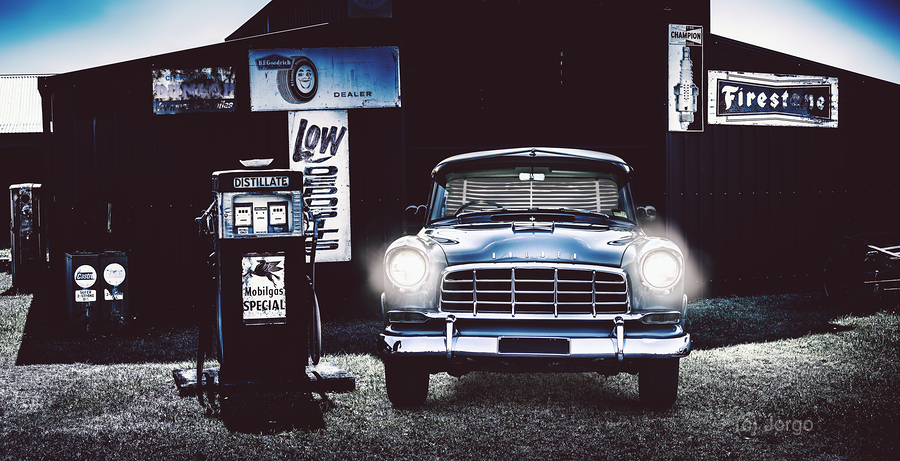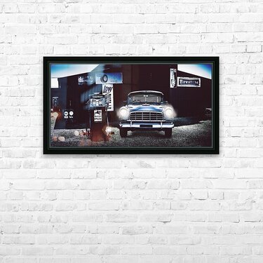 Get this artwork "60s Australian FC Holden parked at old garage" in a framed print.