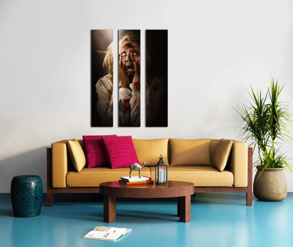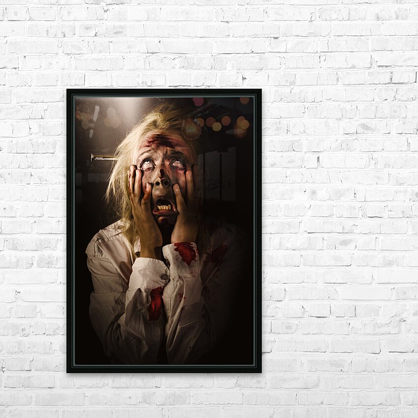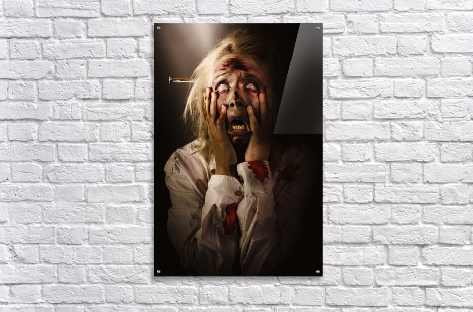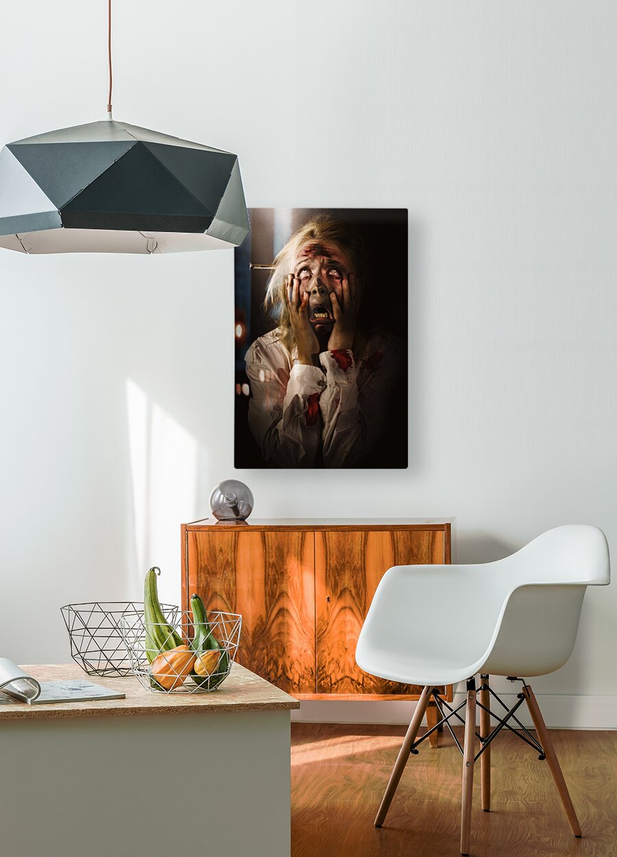 Facing dark horror. Dying zombie screaming in fear Frame print