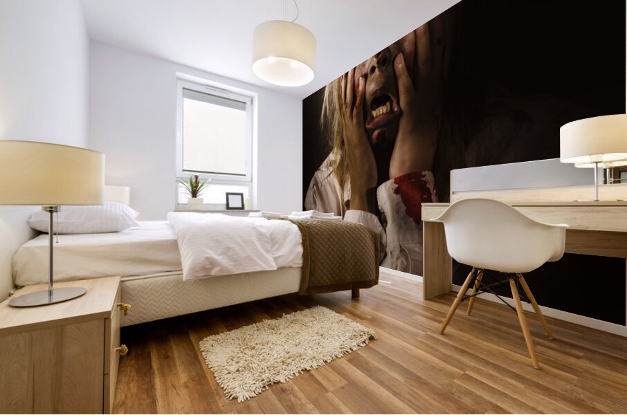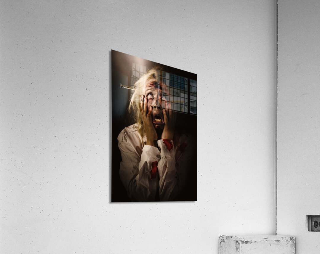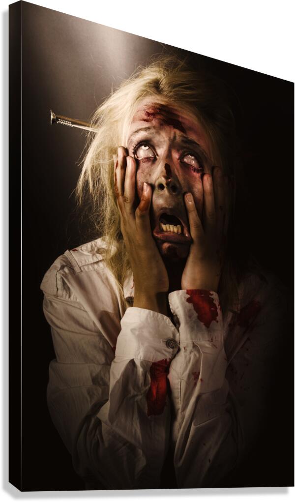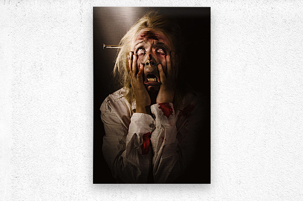 ABOUT THIS ARTWORK: FACING DARK HORROR. DYING ZOMBIE SCREAMING IN FEAR