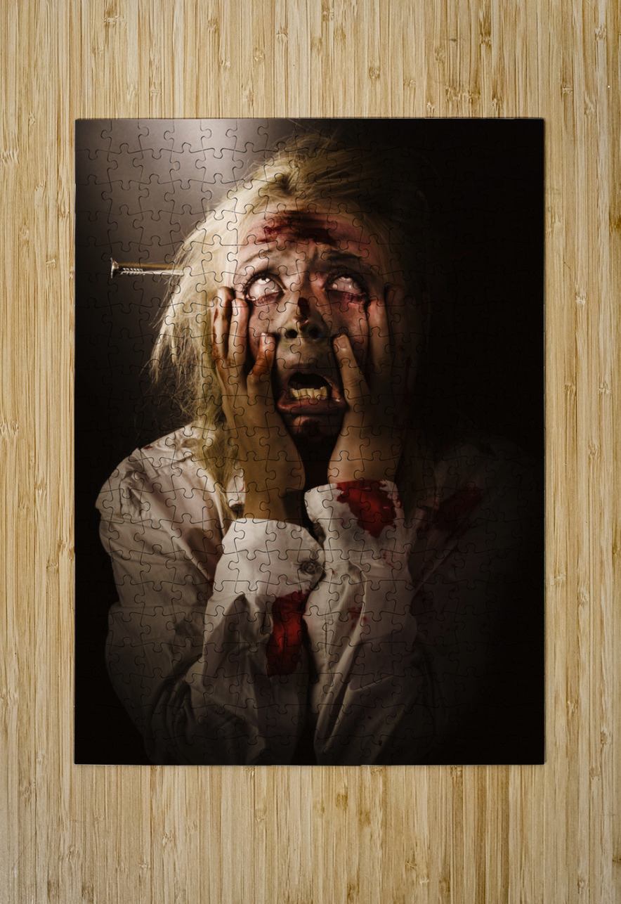 Facing dark horror. Dying zombie screaming in fear Jorgo Puzzle printing