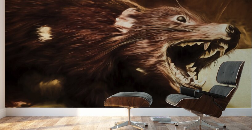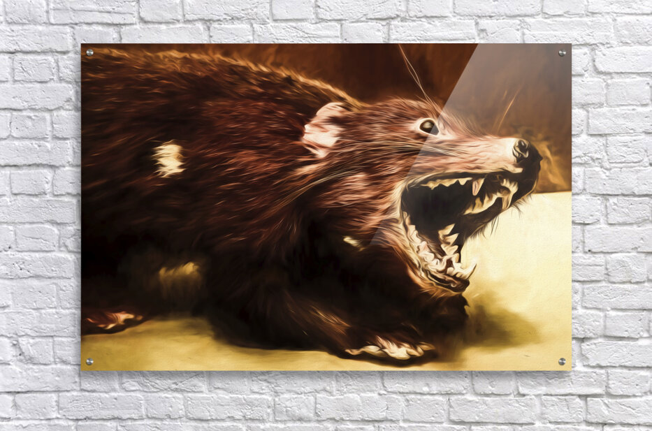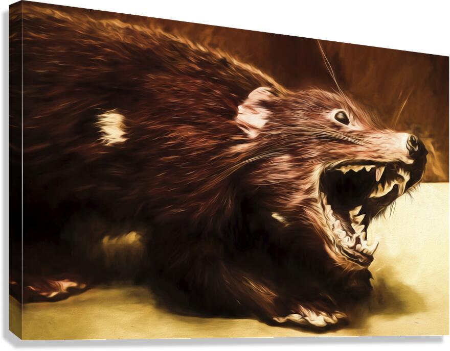 Artistic digital painting of the endangered species the Tasmanian Devil Sarcophilus harrisii roaring out its distinctive and characteristic screech. Tasmanian marsupial art