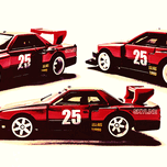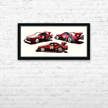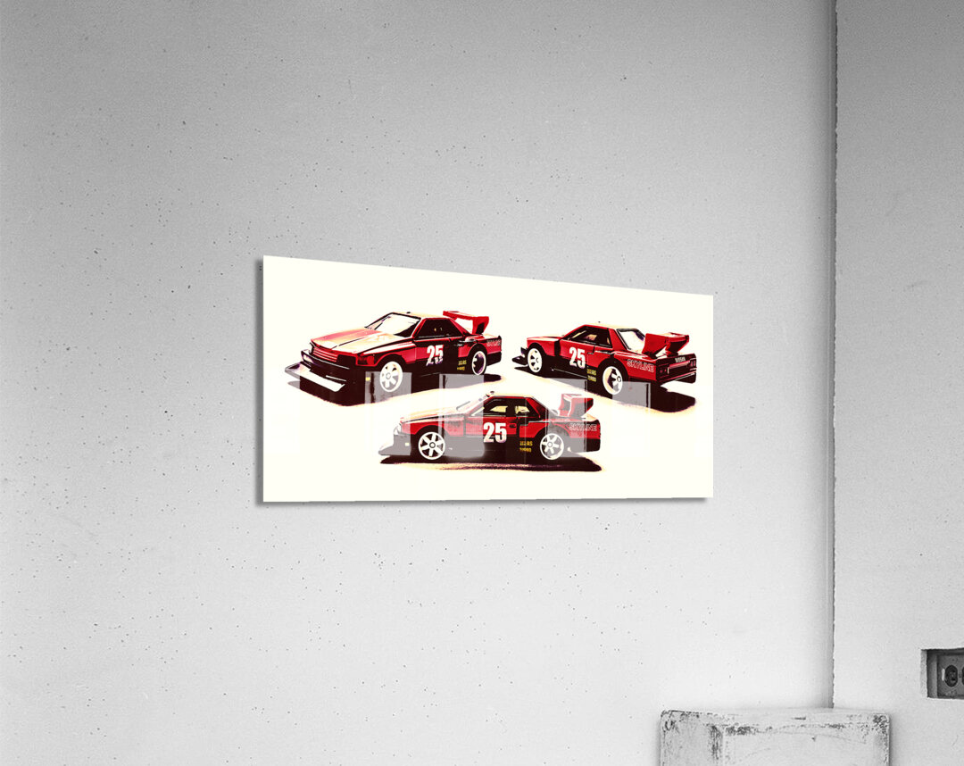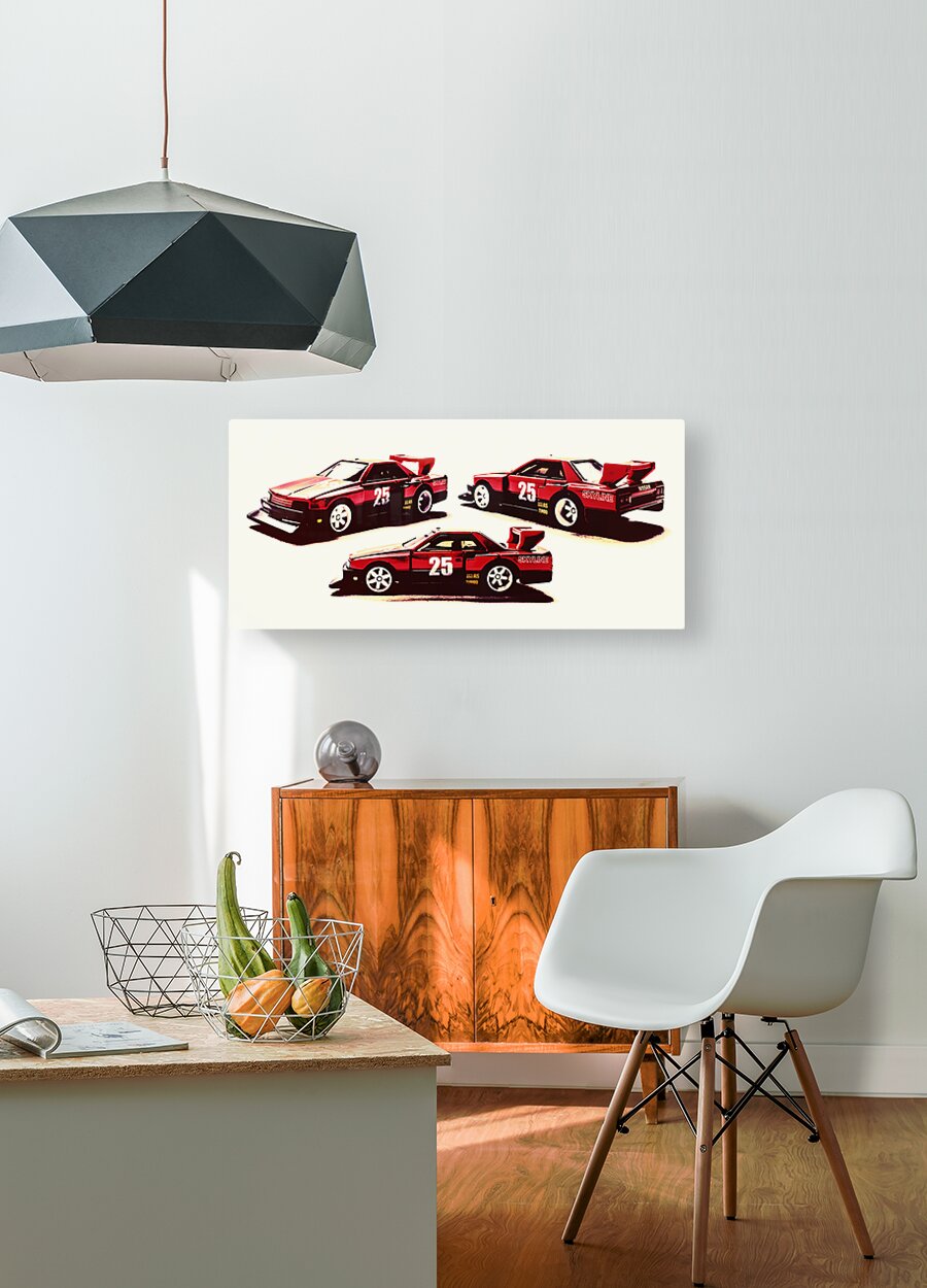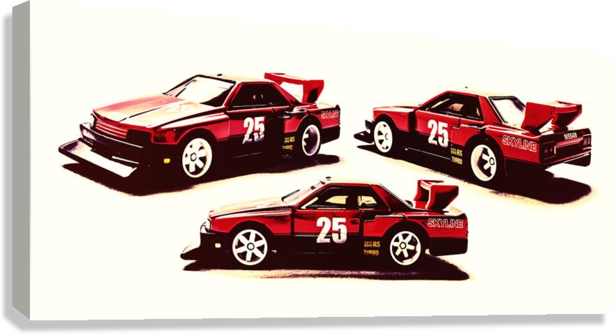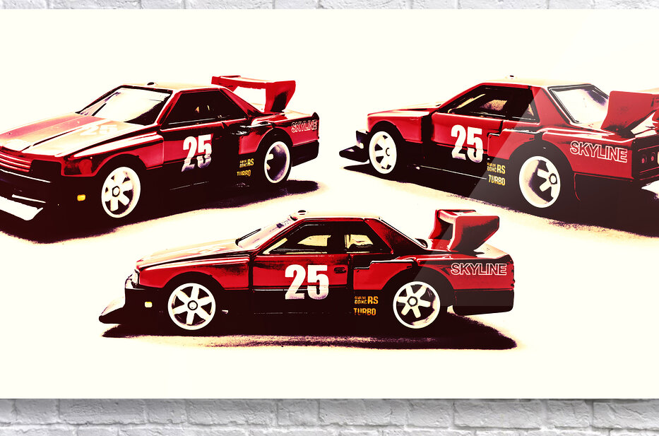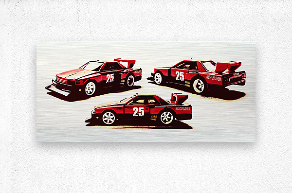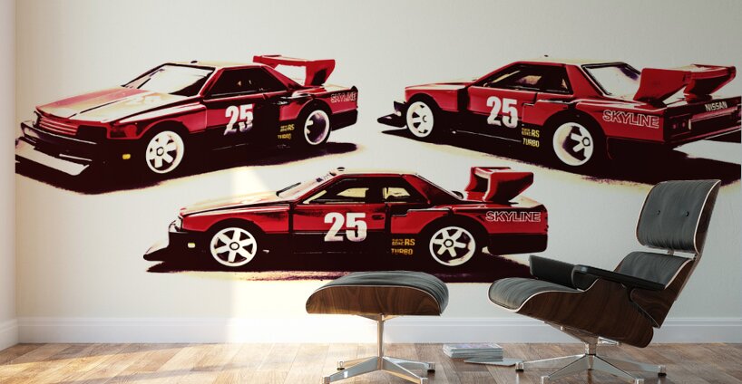 Horizontal racing art on a set of Nissan Skyline street machines in gritty urban race style