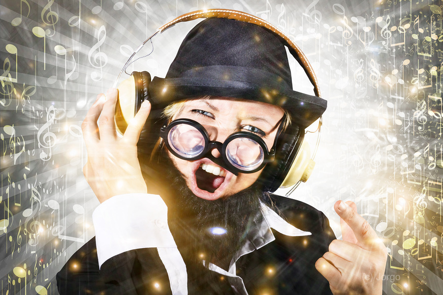 ABOUT THIS ARTWORK: ROCK MAN WITH BEARD LISTENS TO MUSIC ON EARPHONES