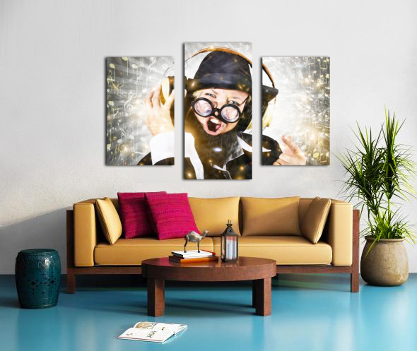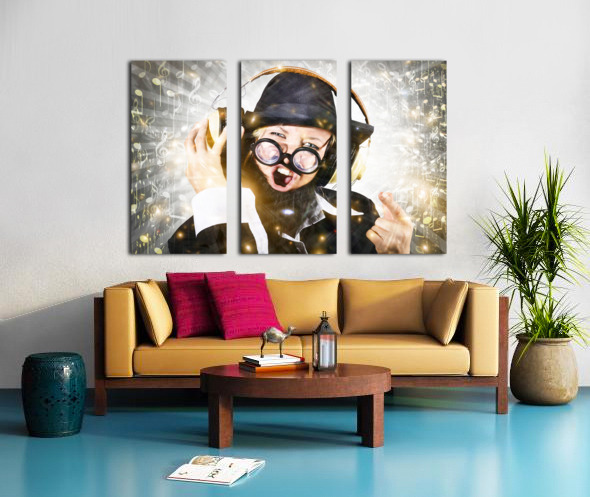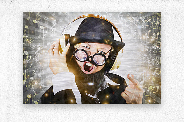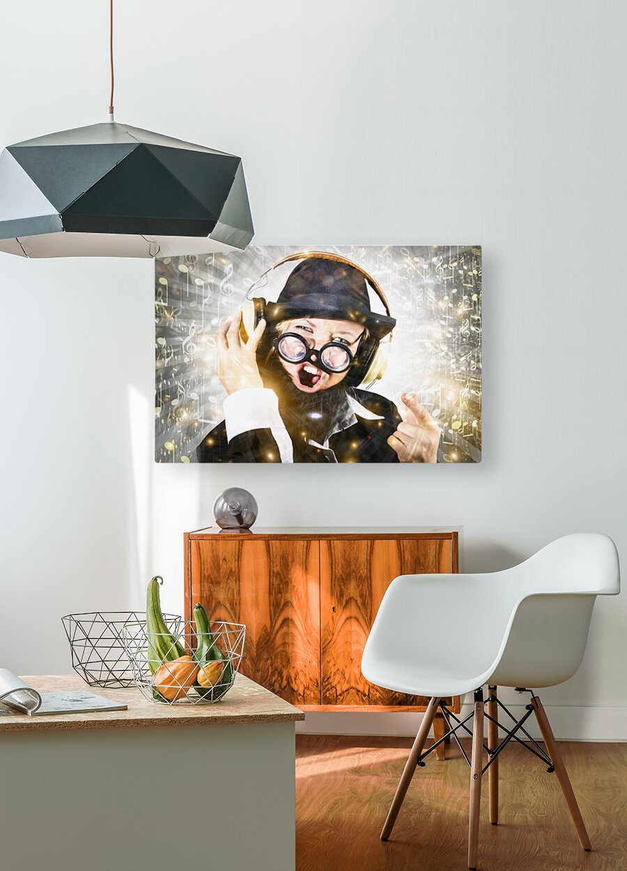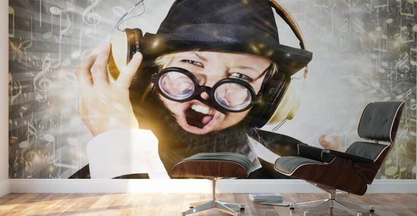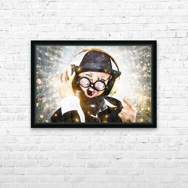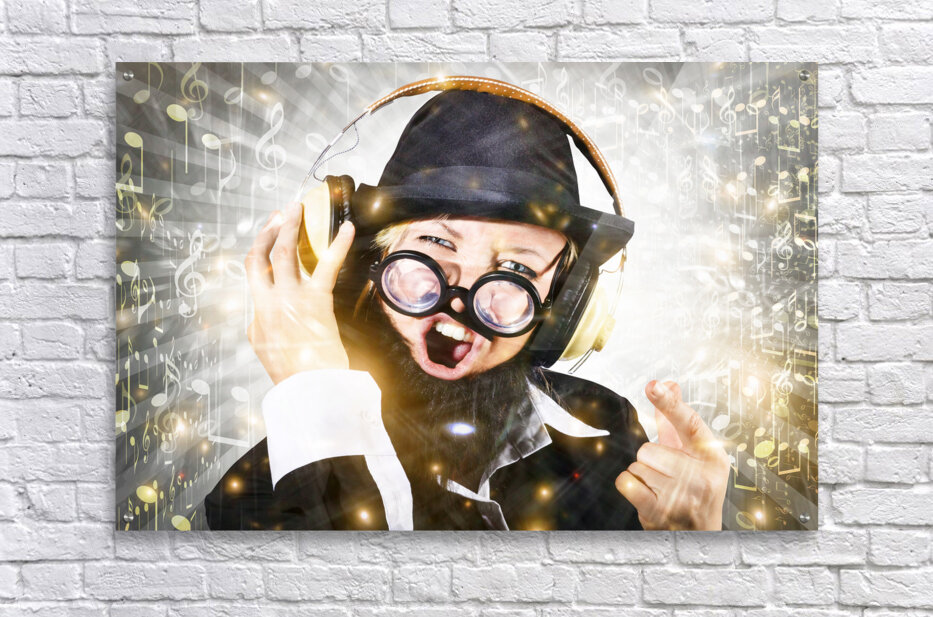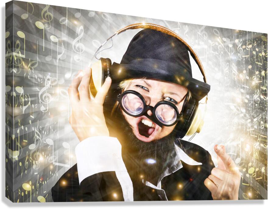 Get this artwork "Rock man with beard listens to music on earphones" in a framed print.