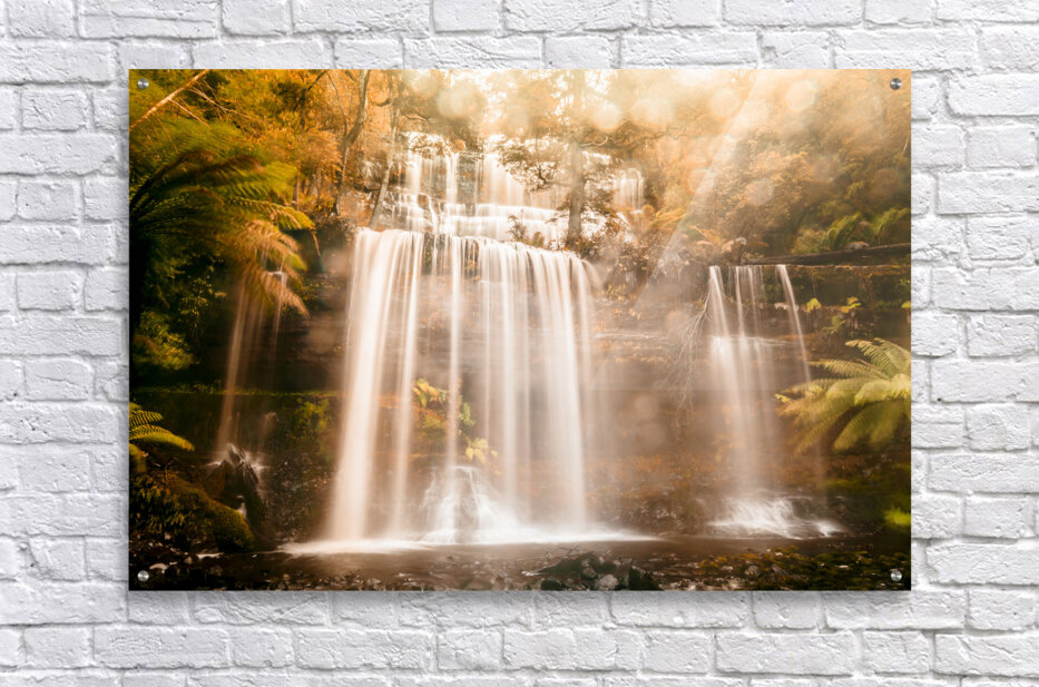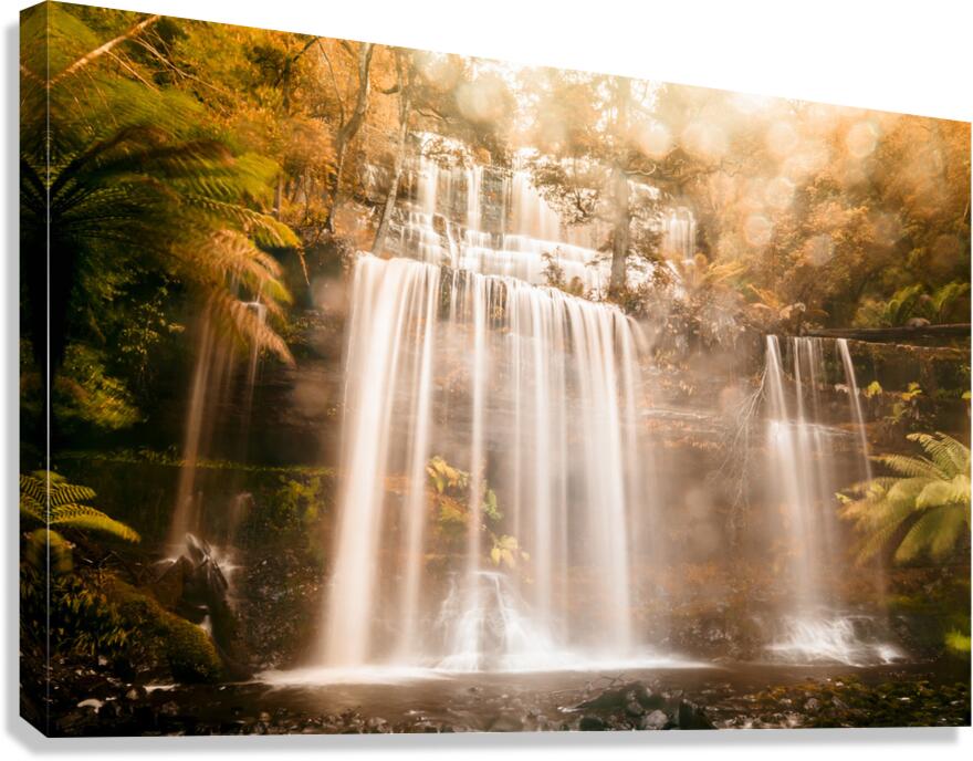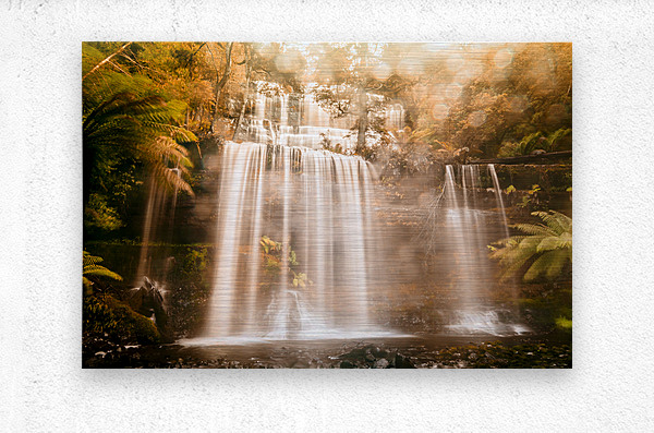 The fall of autumn runs in a cascade of fresh cold water from a lovely stream in Mt Field national park. Russell Falls Tasmania Australia