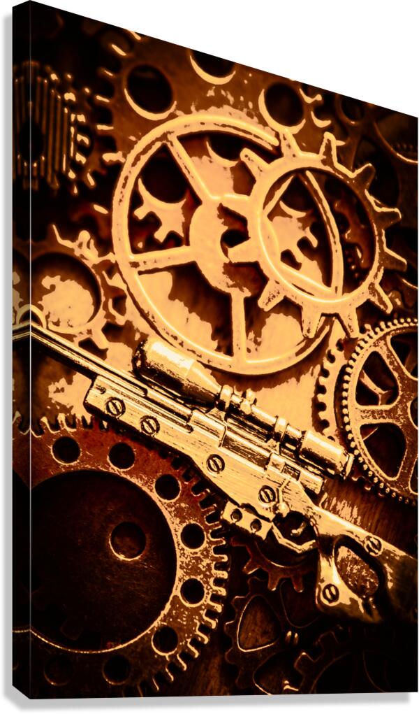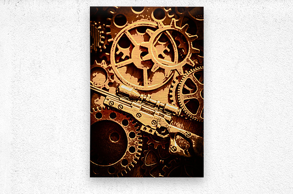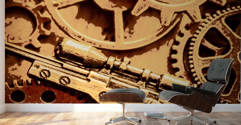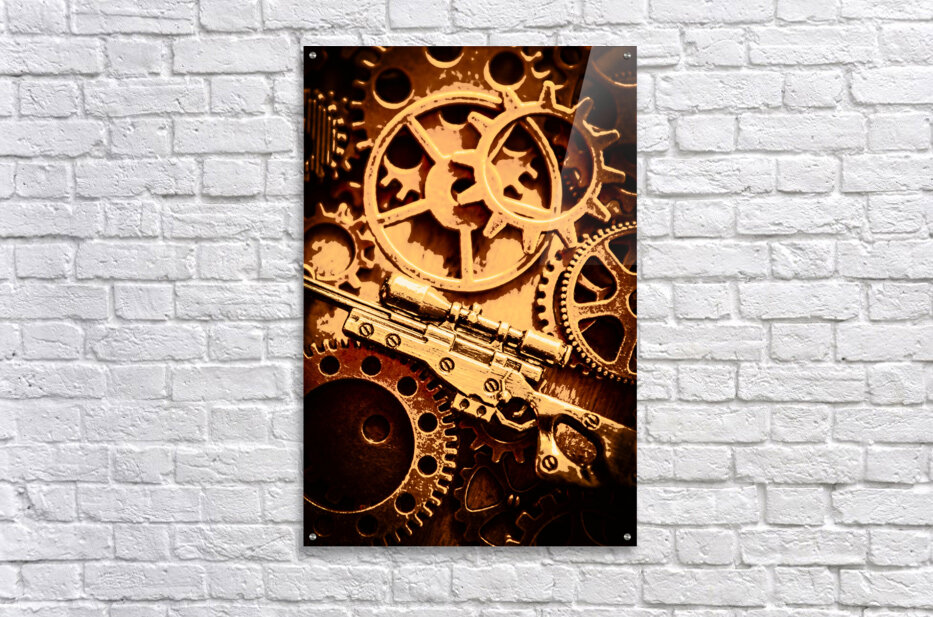 Creative stylised firearm art on a old tactical Sniper rifle in retro army style. Coat of arms