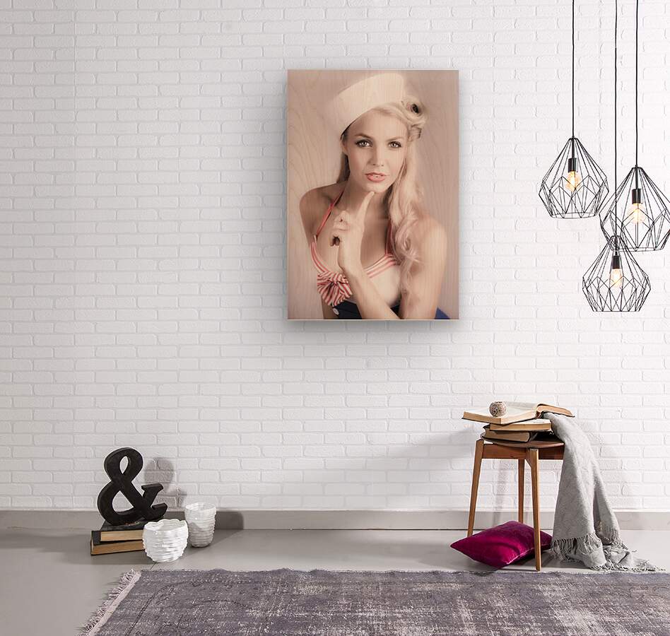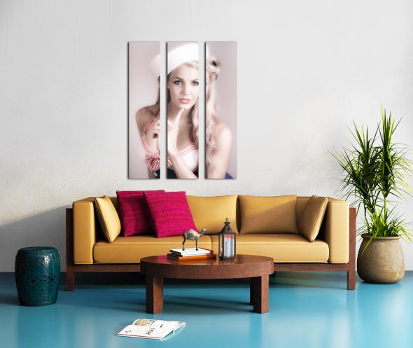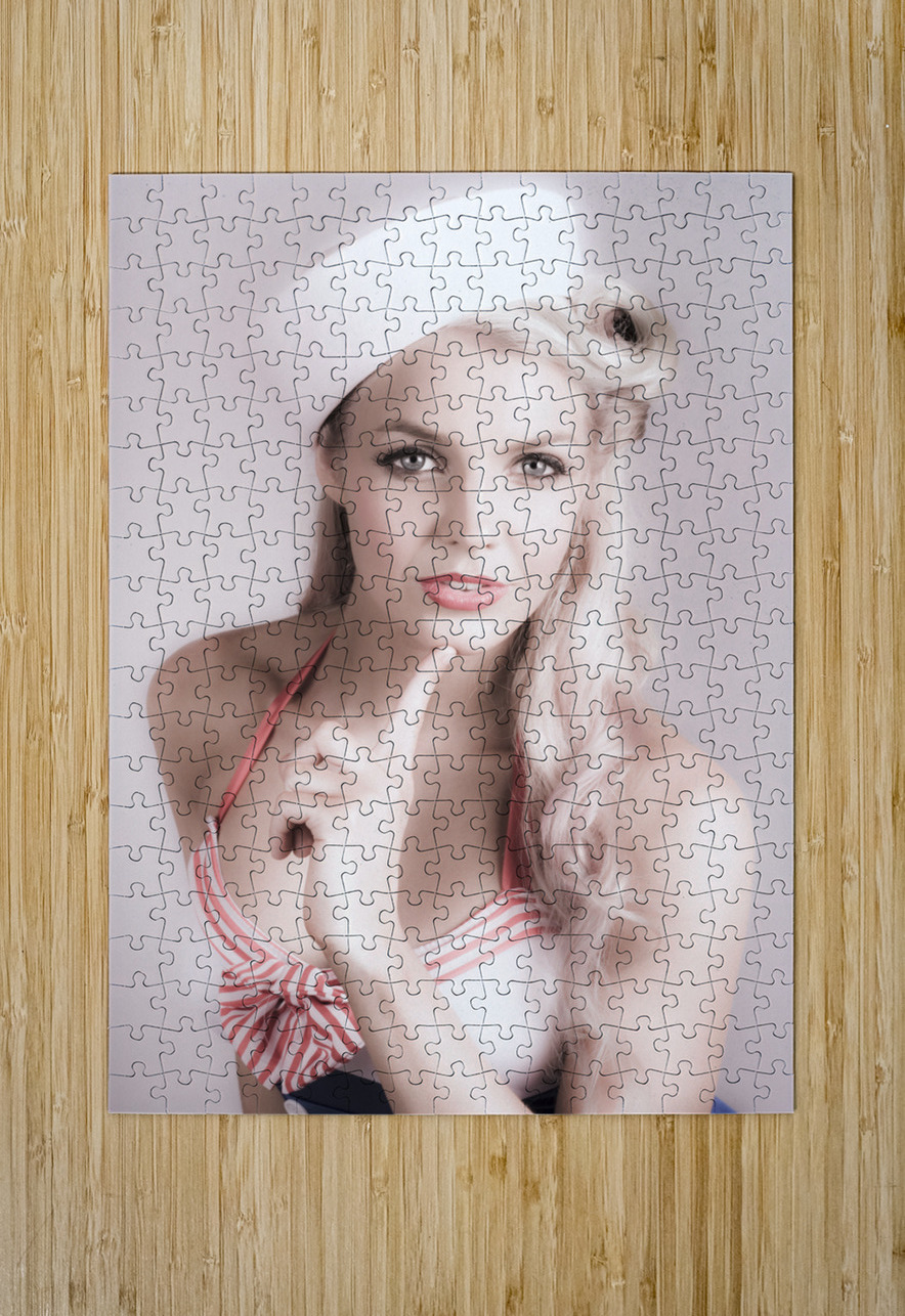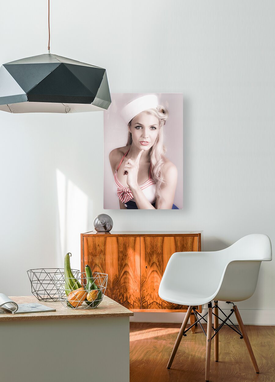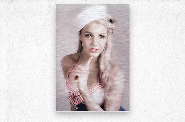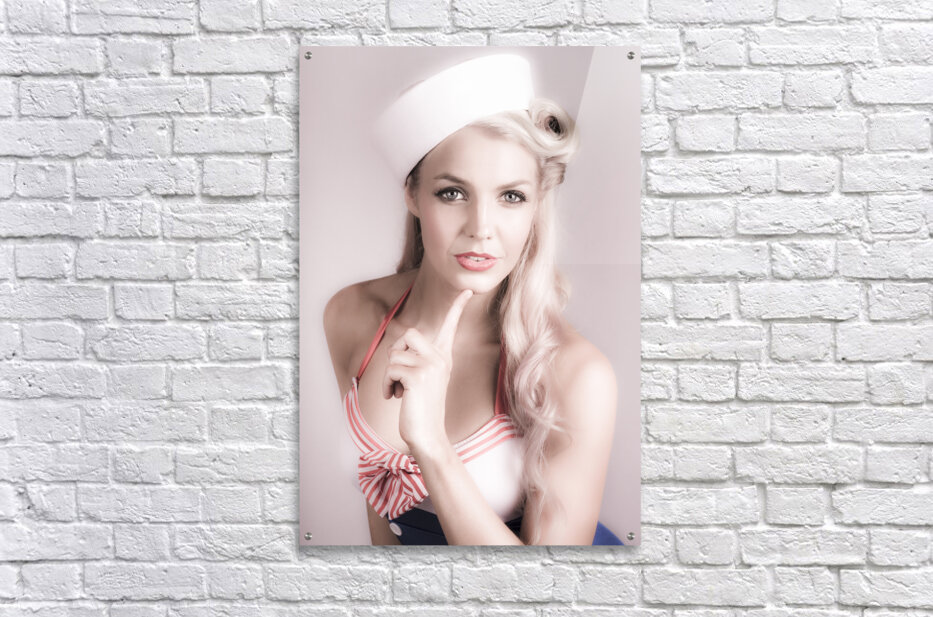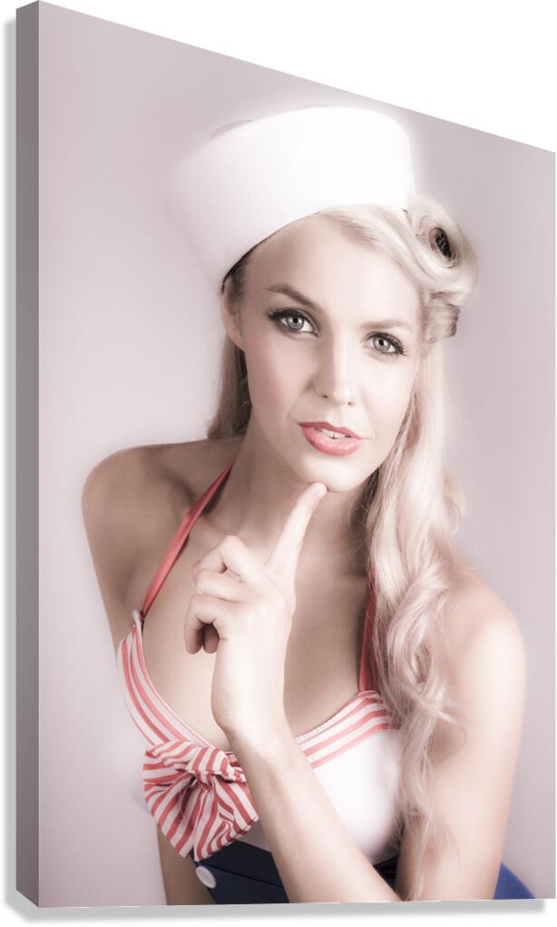 Soft fine art portrait on a lovely vintage sailing pinup looking shipshape in maritime sailors uniform