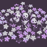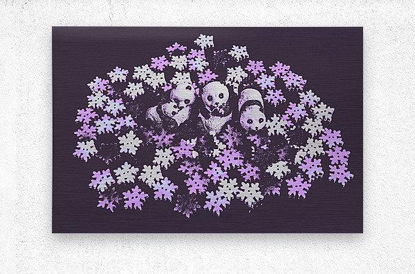 Fine ornamental art on a family of polar bears among a frost of button snowflakes. Polar pop art