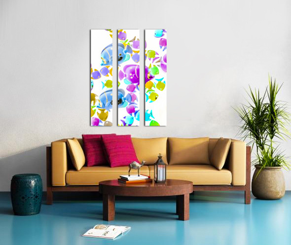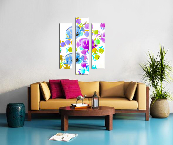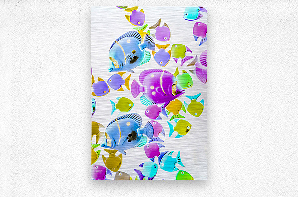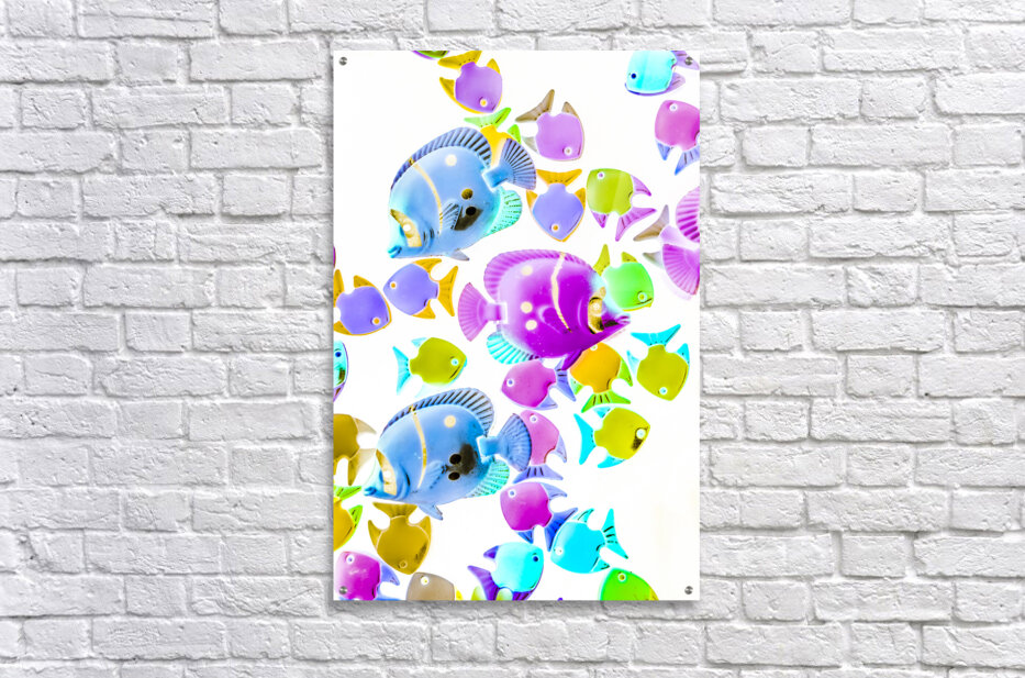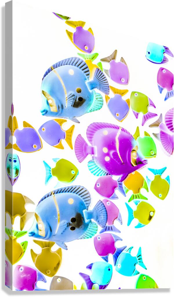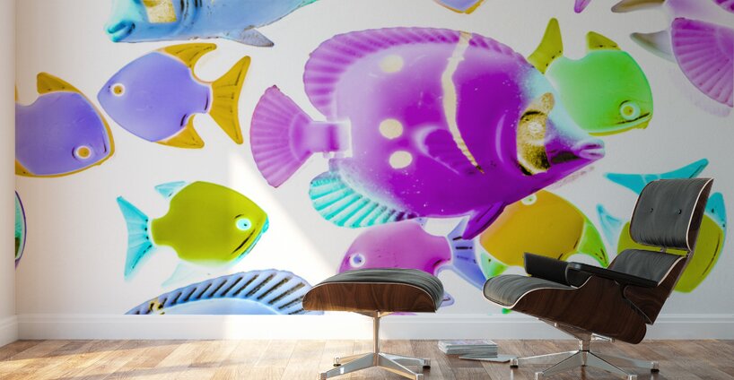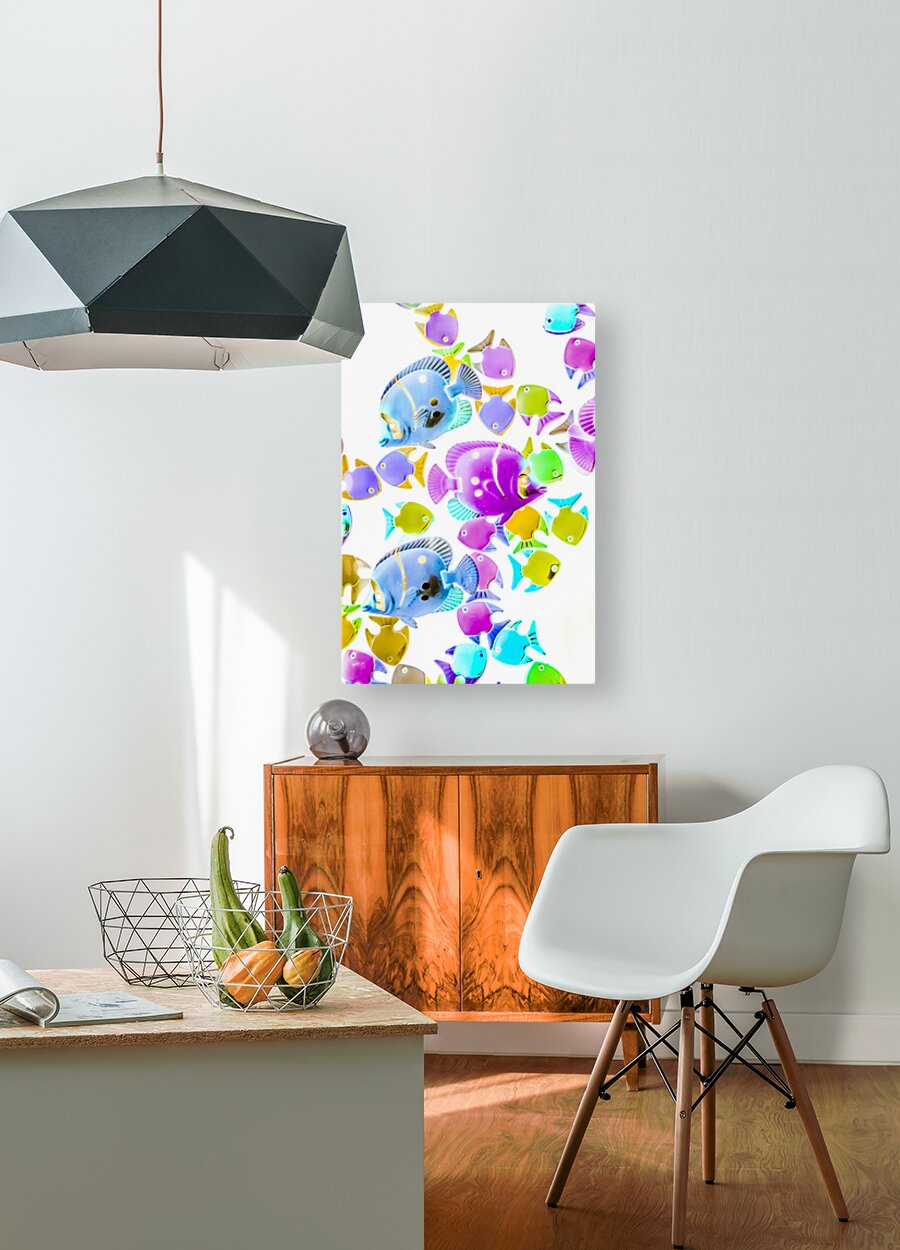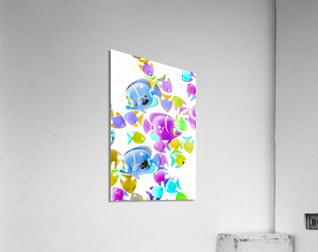 Creative colorful composition on bright exotic fish abstracted on white. Sea swimmers