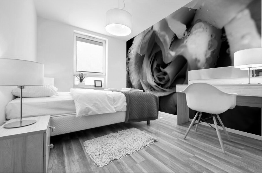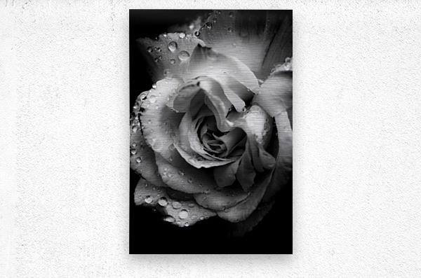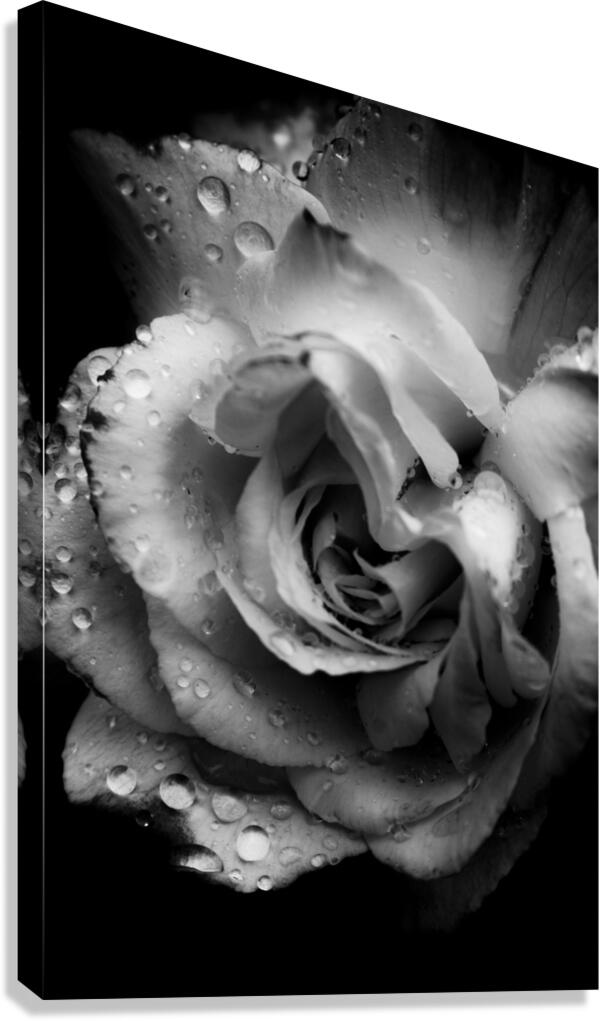 Floral fine art in a monochrome scene of roses in rainy darkness