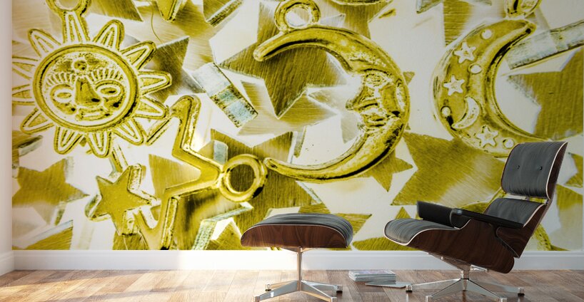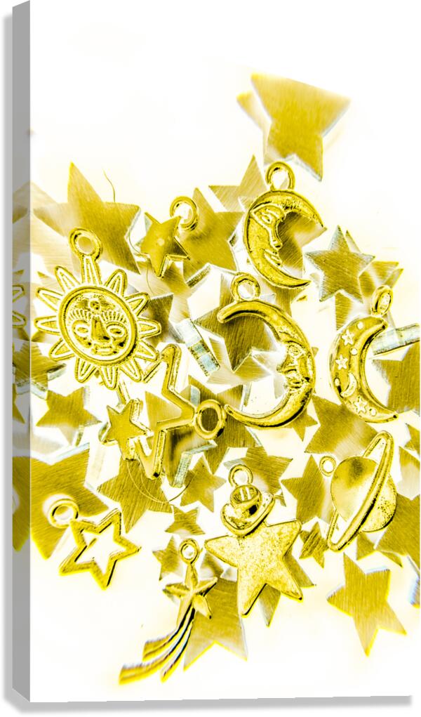 Creative inverse of decorative solar system icons from planetarium abstractions. Golden galaxy