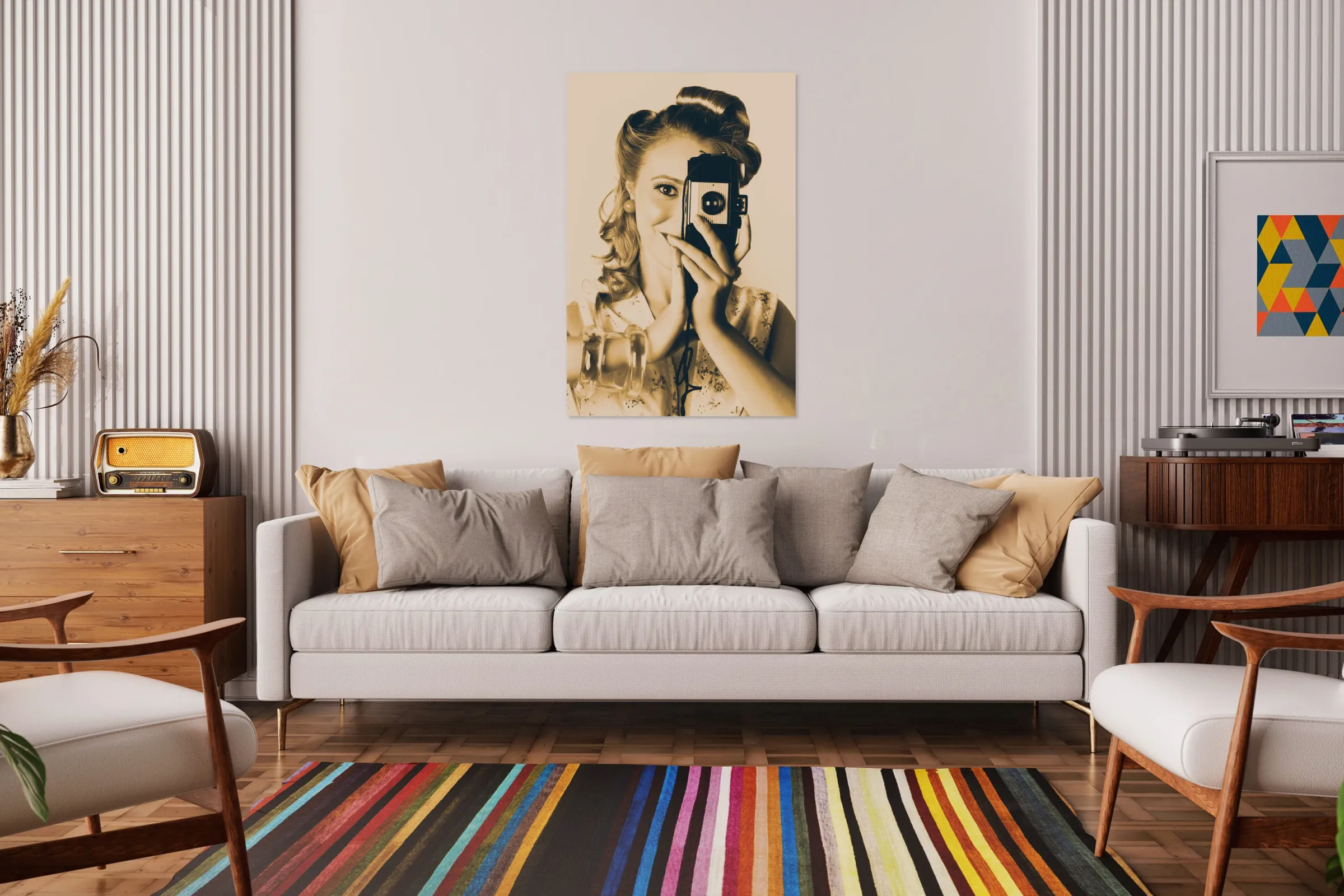 ABOUT THIS ARTWORK: FEMALE FASHION PHOTOGRAPHER TAKING PEOPLE PICTURES