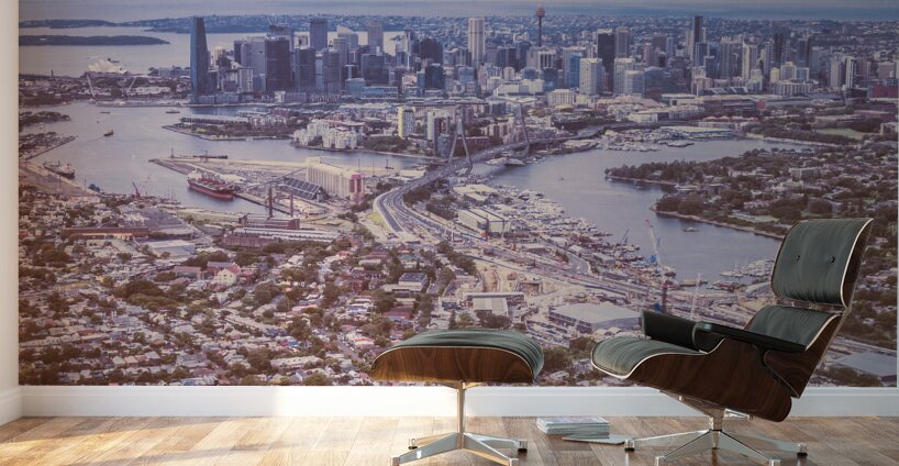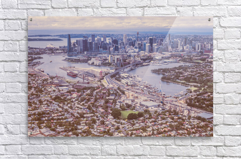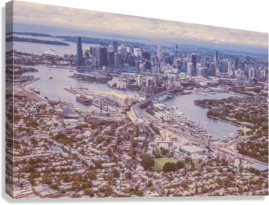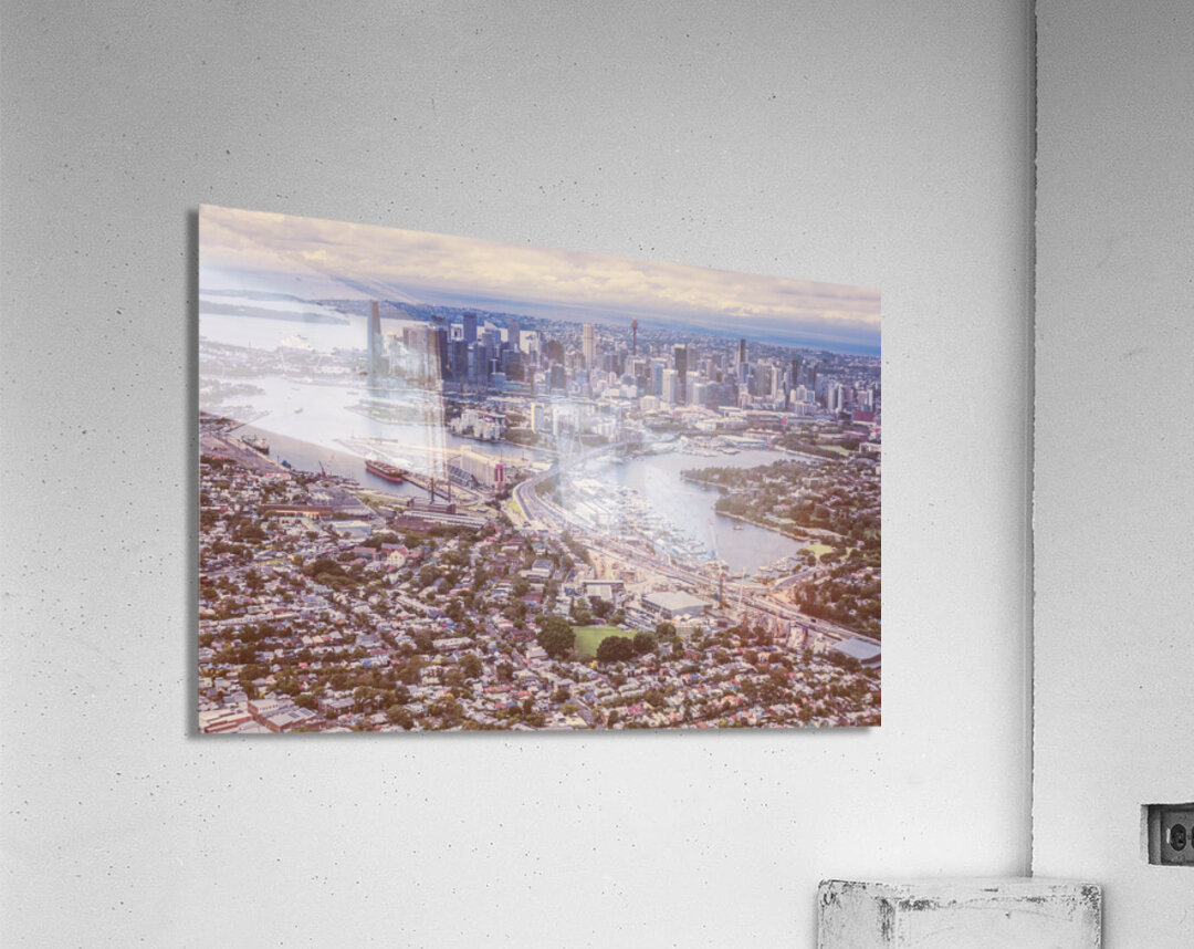 Pastel toned landscape art on the harbour city of Sydney taken at beautiful heights. New South Wales Australia. 2021