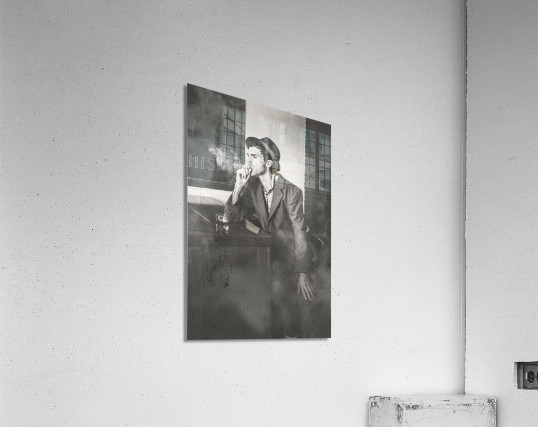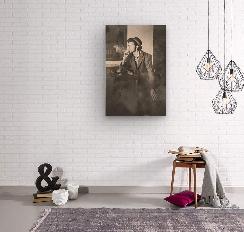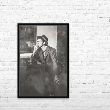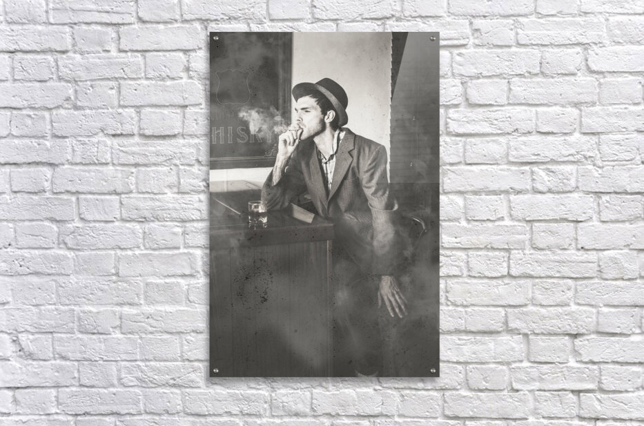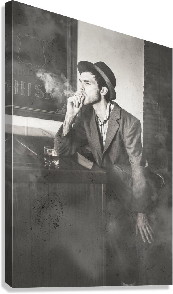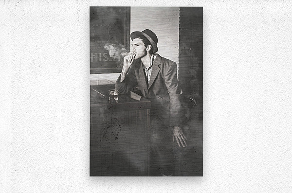 ABOUT THIS ARTWORK: VINTAGE MAN IN HAT SMOKING CIGARETTE IN JAZZ CLUB