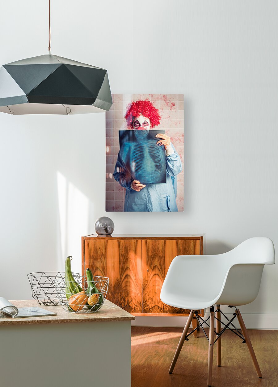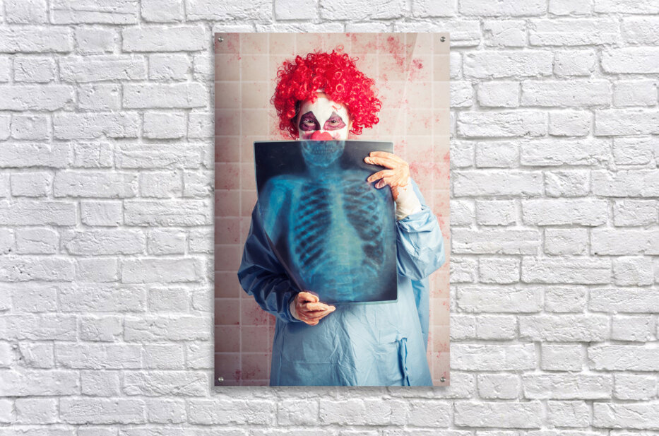 ABOUT THIS ARTWORK: SCARY CLOWN PEEKING BEHIND X-RAY. FUNNY BONES