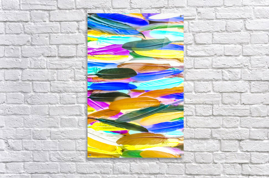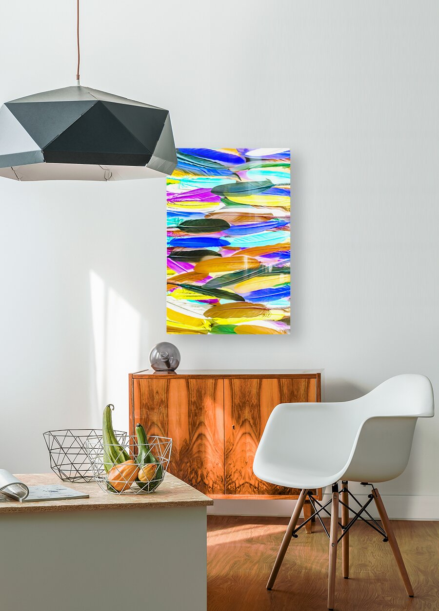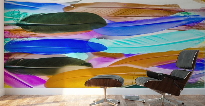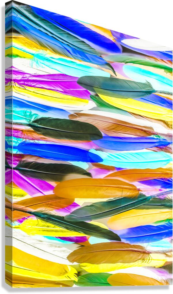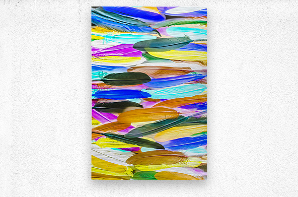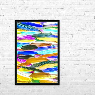 Painterly pop-art in a creative rainbow display of assorted feathers in lineal vibrancy. Color Novella
