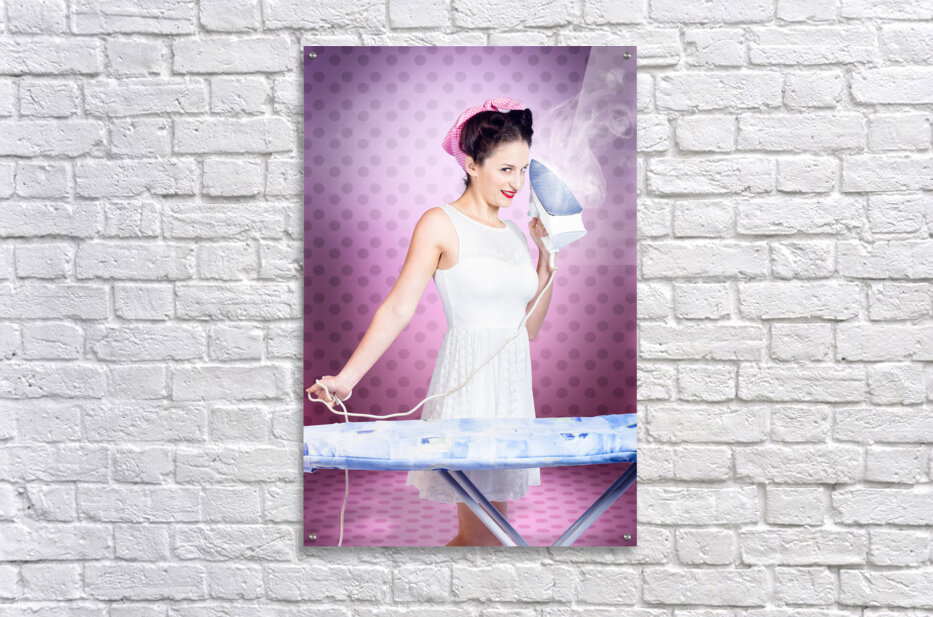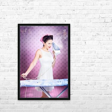 Ironing pinup housewife doing sixties housework Picture Frame Printing