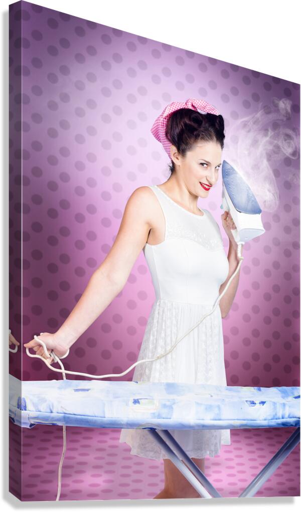 Get this artwork "Ironing pinup housewife doing sixties housework" in a framed print.