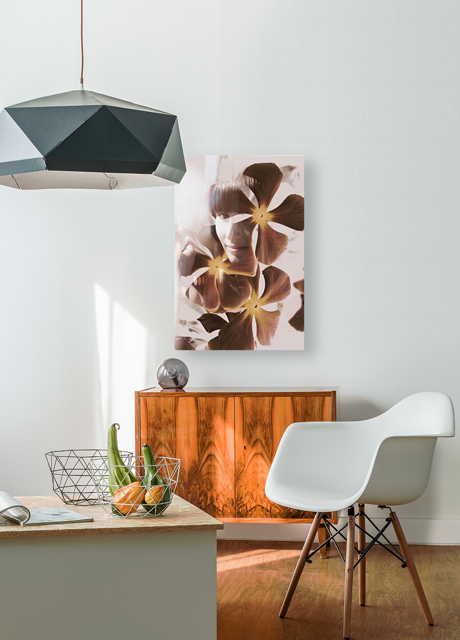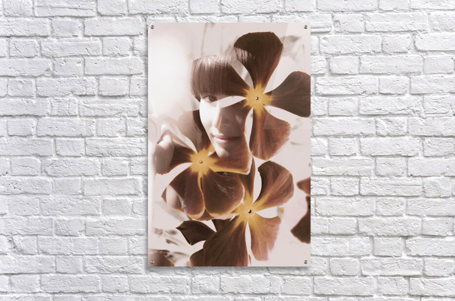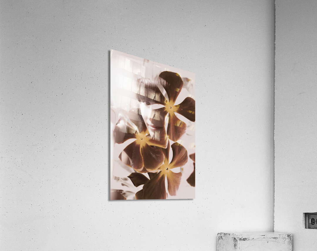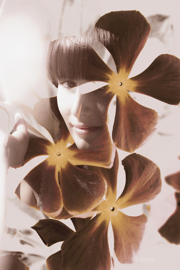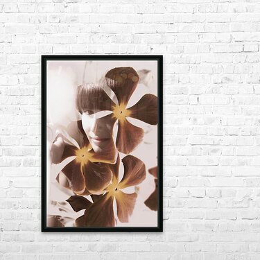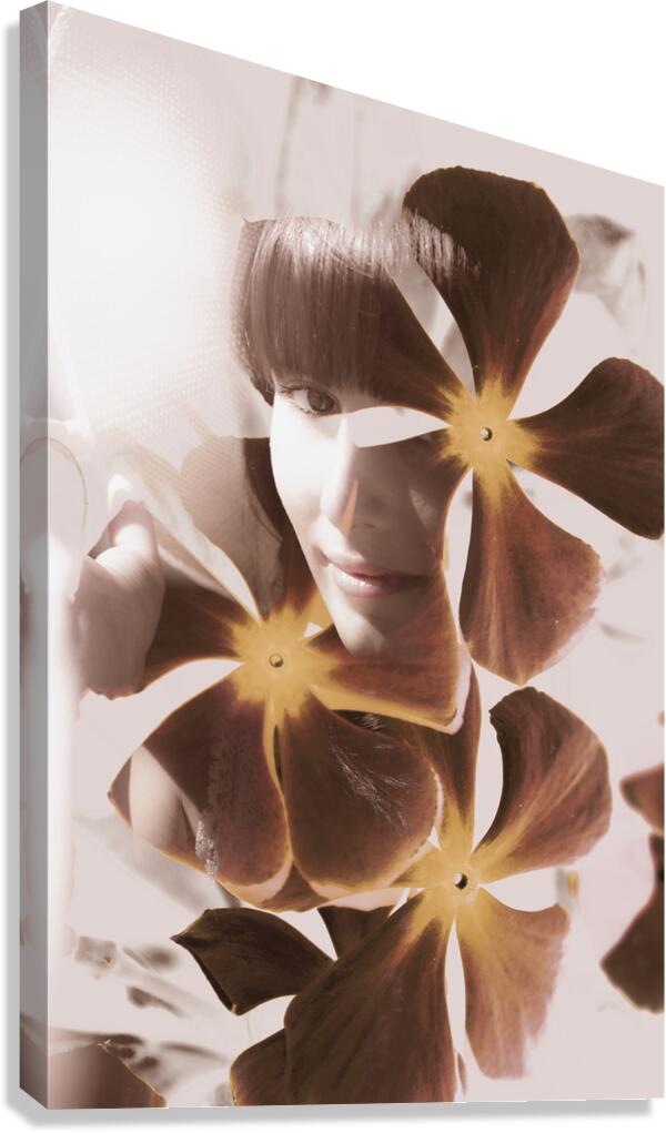Vintage double exposure on a girl abstracted on ornate flower design. Stories of fleeting romance
