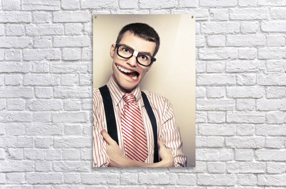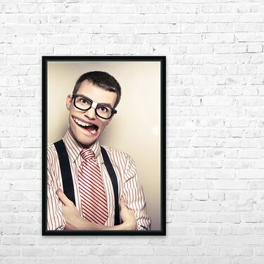 Funny Retro Male Nerd With Big Mouth On Copyspace  Picture Frame Printing