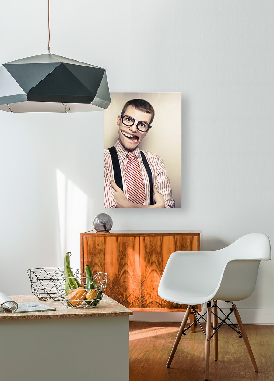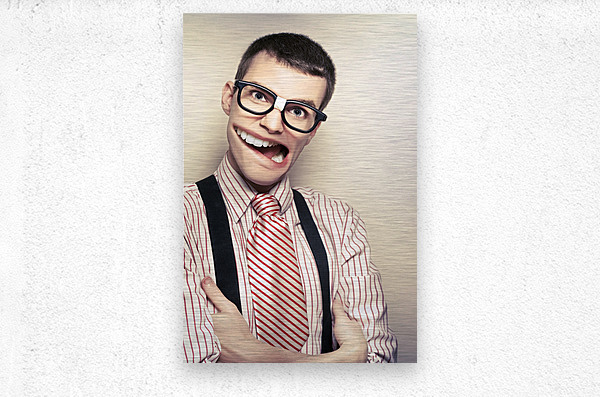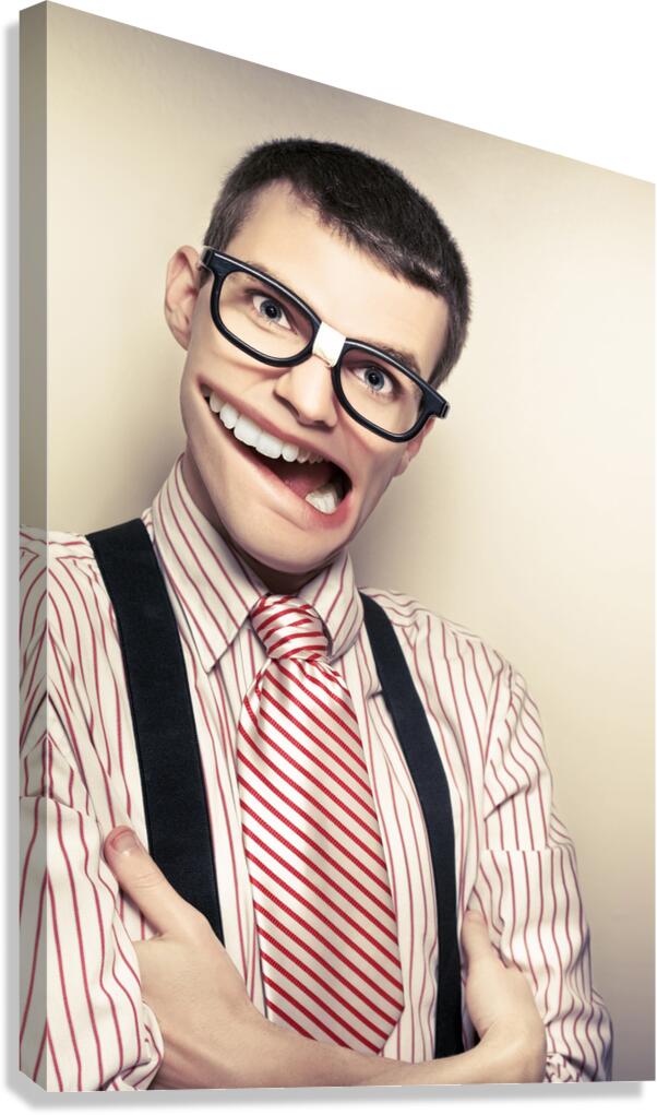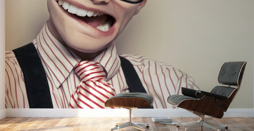 ABOUT THIS ARTWORK: FUNNY RETRO MALE NERD WITH BIG MOUTH ON COPYSPACE