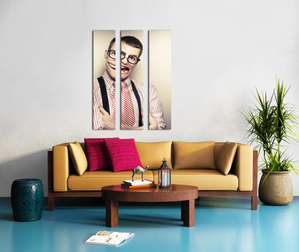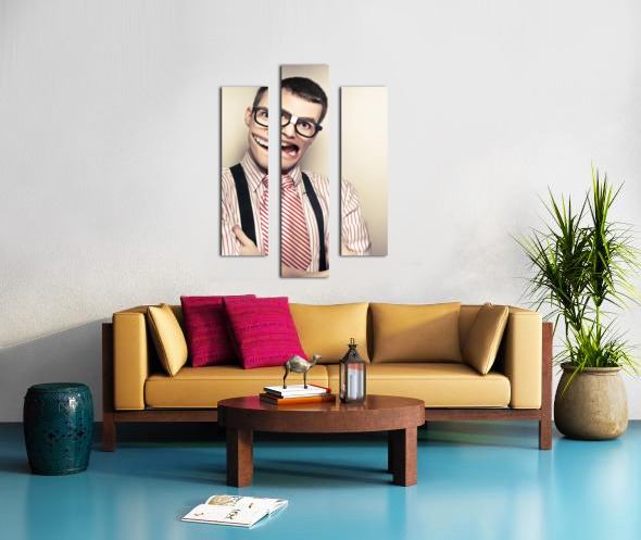 Get this artwork "Funny Retro Male Nerd With Big Mouth On Copyspace " in a framed print.