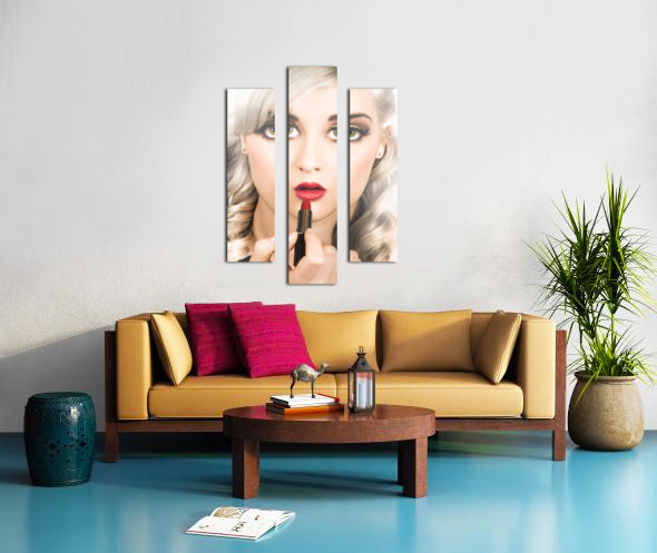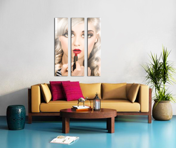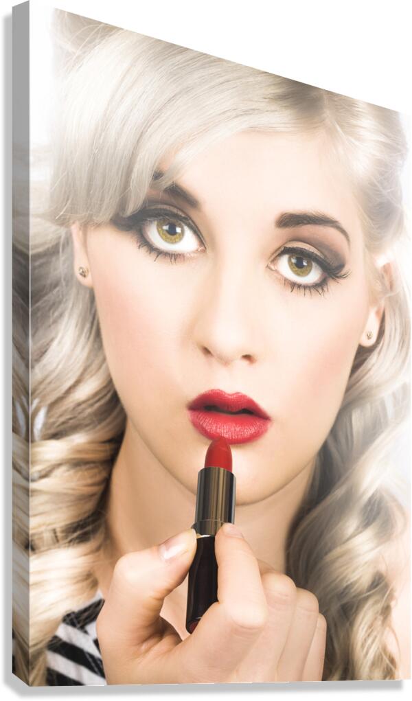 ABOUT THIS ARTWORK: SEXY RETRO PINUP GIRL APPLYING MAKEUP ON LIPS